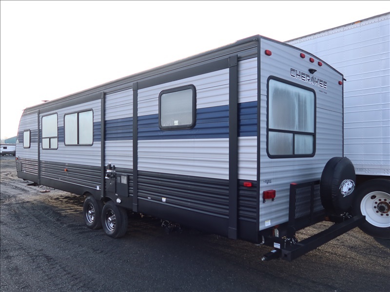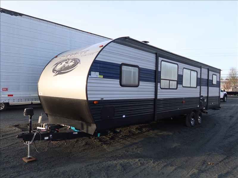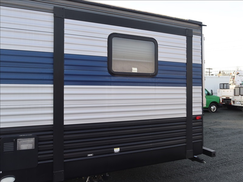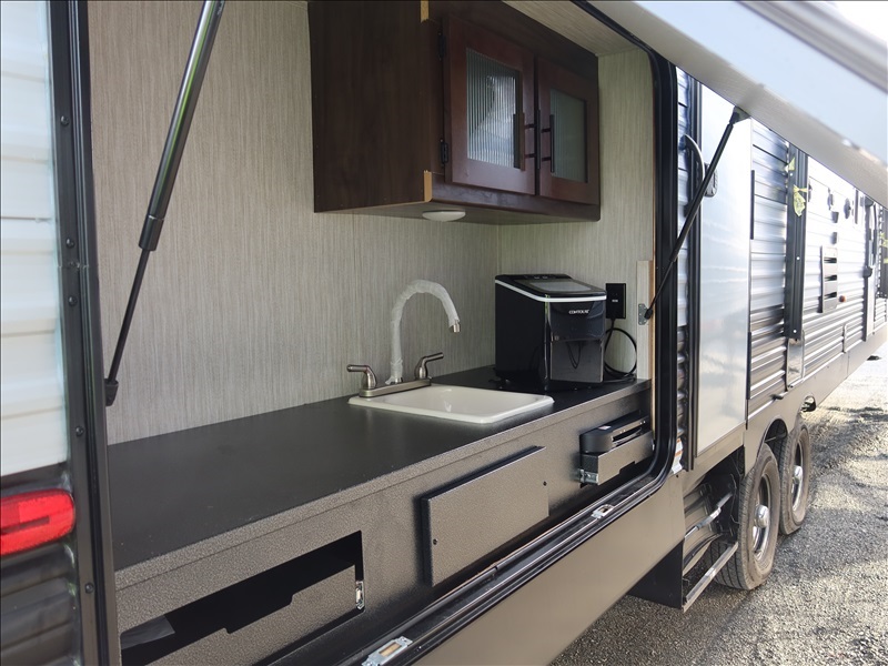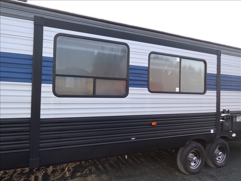 T/A, 34', 9,755 LB GVWR TRAVEL TRAILER, (2) SLIDES, FRONT SLEEPING AREA, REAR BUNK, REAR BATHROOM, A/C UNIT, KITCHEN, OUTDOOR KITCHEN, STABILIZER JACKS, 225/75R15 (NO PROPANE TANKS, ELECTRIC TONGUE JACK, NEEDS REPAIR, PLEASE PREVIEW)