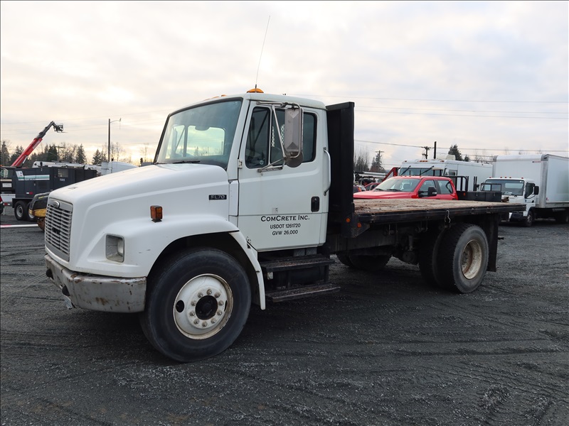 14' FLATBED, CUMMINS ISC 215, 6 SPD