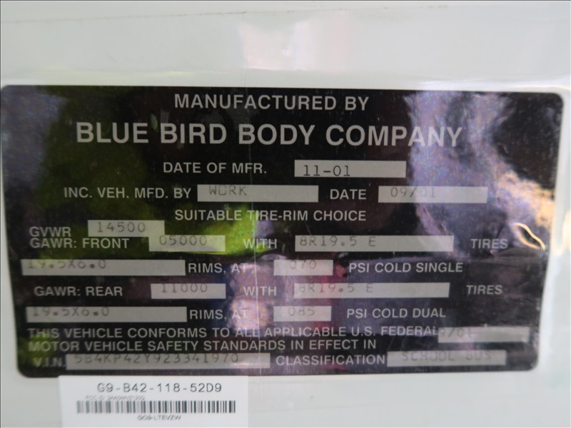 2002 BLUEBIRD MINI BIRD SCHOOL BUS
