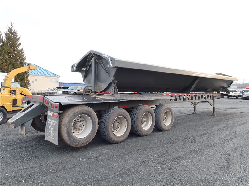 QUAD/A, 46' OAL, 78,990 LB GVWR SIDE DUMP TRAILER, 36' STEEL BOX, SPRING SUSPENSION, DROP AXLE, A/B, REAR PUSHER, 385/65R22.5