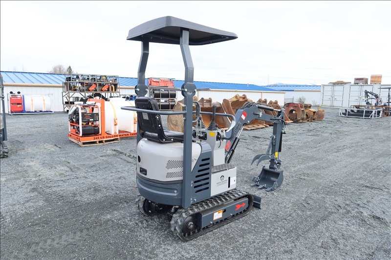MINI EXCAVATOR, BRIGGS & STRATTON XR, FIXED THUMB, AUX HYD, 14" BUCKET, BLADE, RUBBER TRACKS, CANOPY (HOUR METER READS: 2.3)