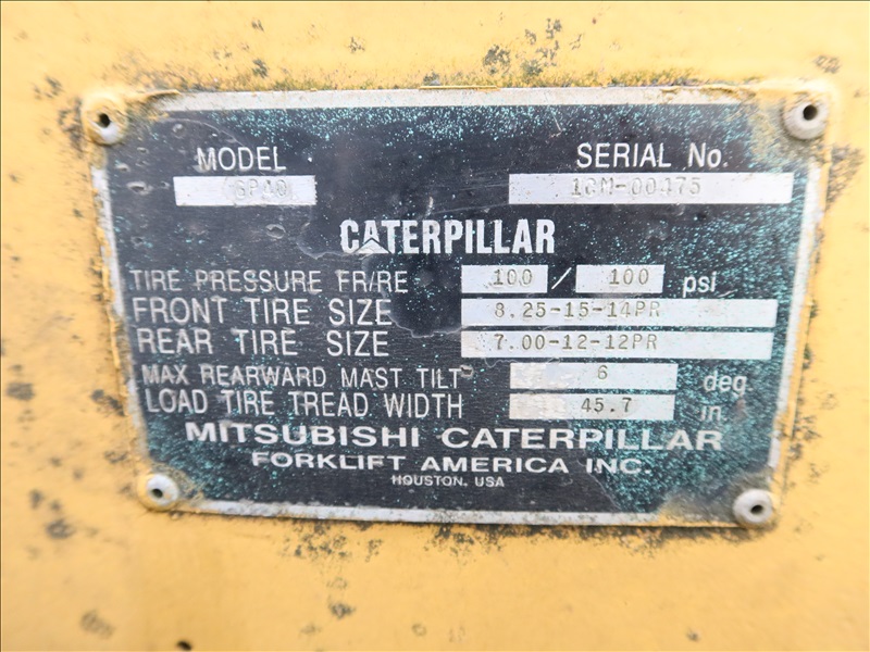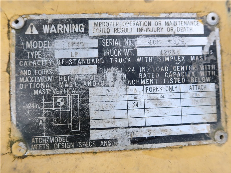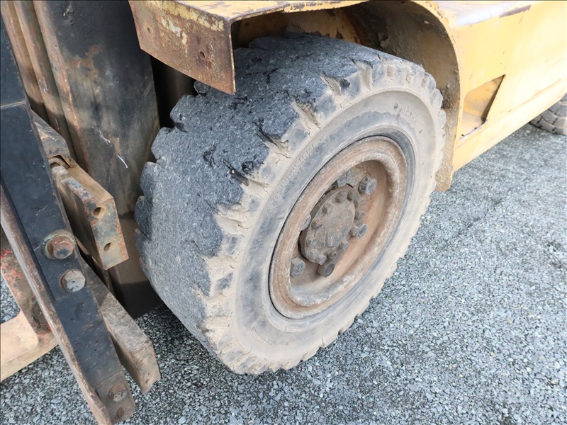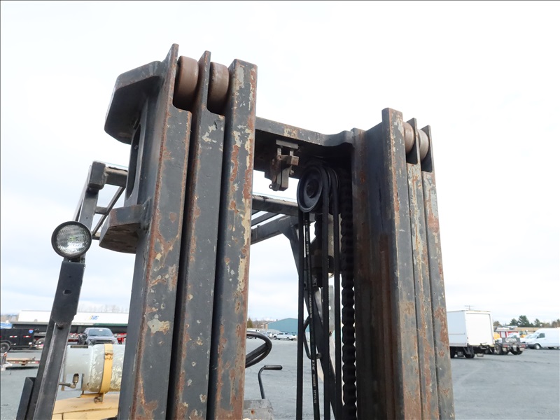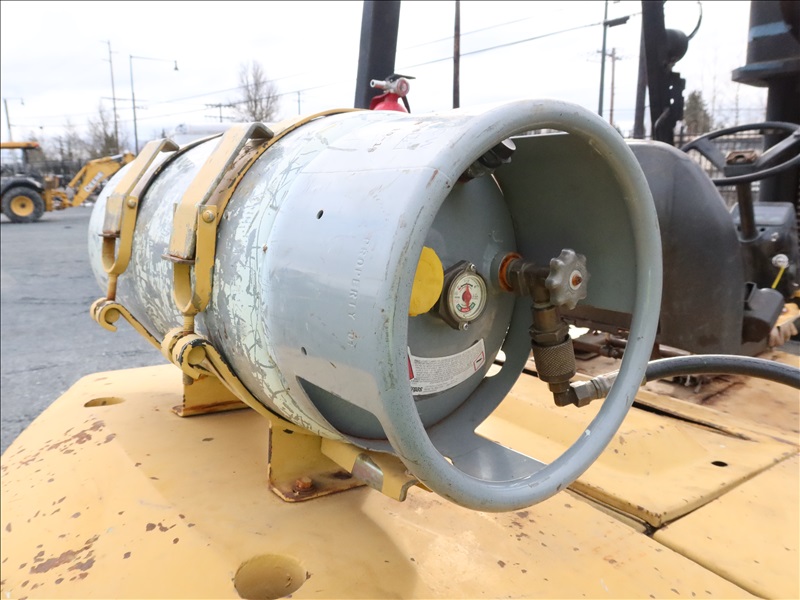 8,000 LB CUSHION TIRE FORKLIFT, 182" FORK HEIGHT, 3-STAGE MAST, SIDE SHIFT, 6 CYL PROPANE