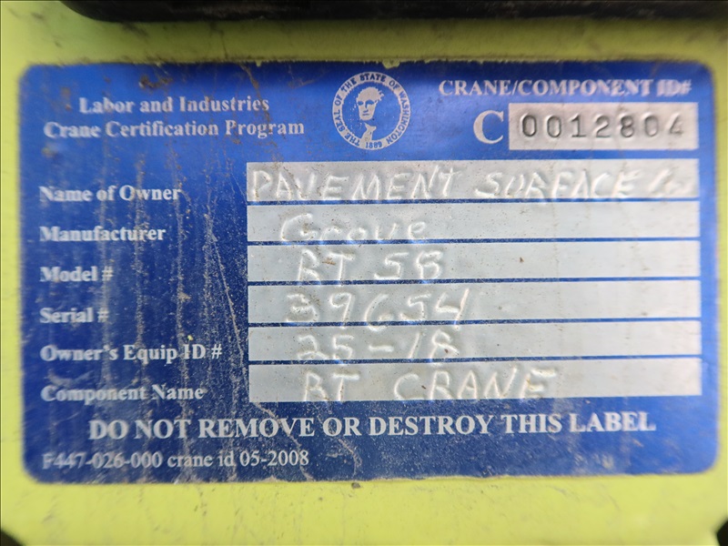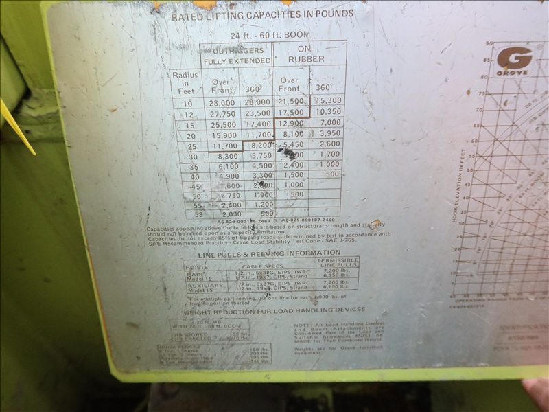 14-TON ROUGH TERRAIN CRANE, 24' - 60' 3-SECTION BOOM, HOOK BLOCK, STABILIZERS, DETROIT 4 CYL