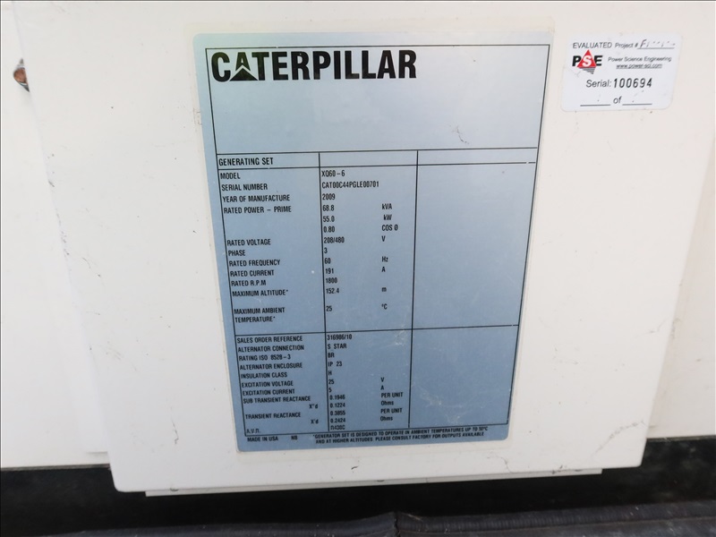 T/A, 68 KVA TRAILER MOUNTED GENERATOR, CAT C4.4 4 CYL DIESEL, ELECT BRAKES, 205/75R15 (NON-OPERATIONAL, GENERATOR NEEDS REPAIR, GENERATOR ELECTRICAL ON PALLET, PLEASE PREVIEW)