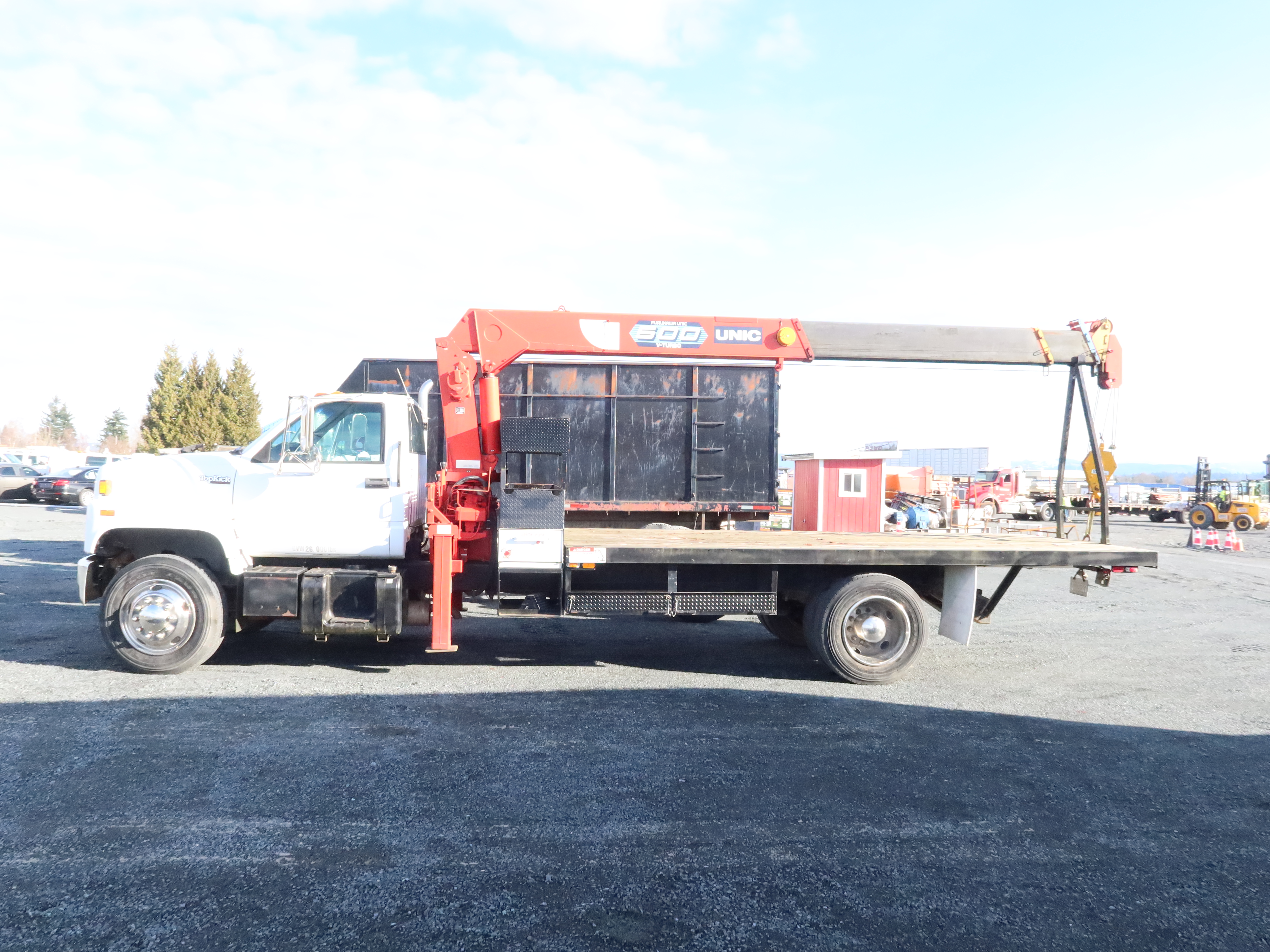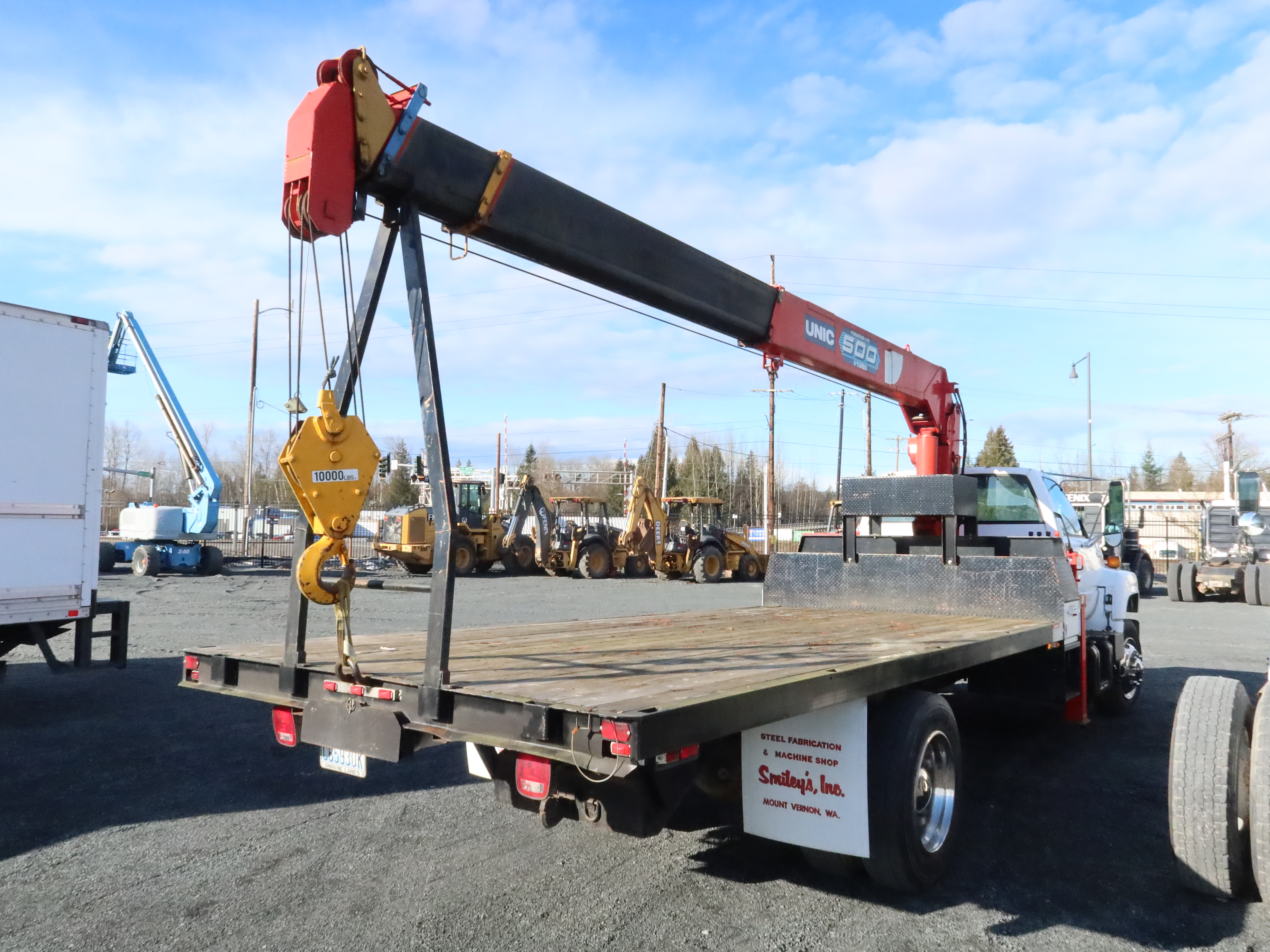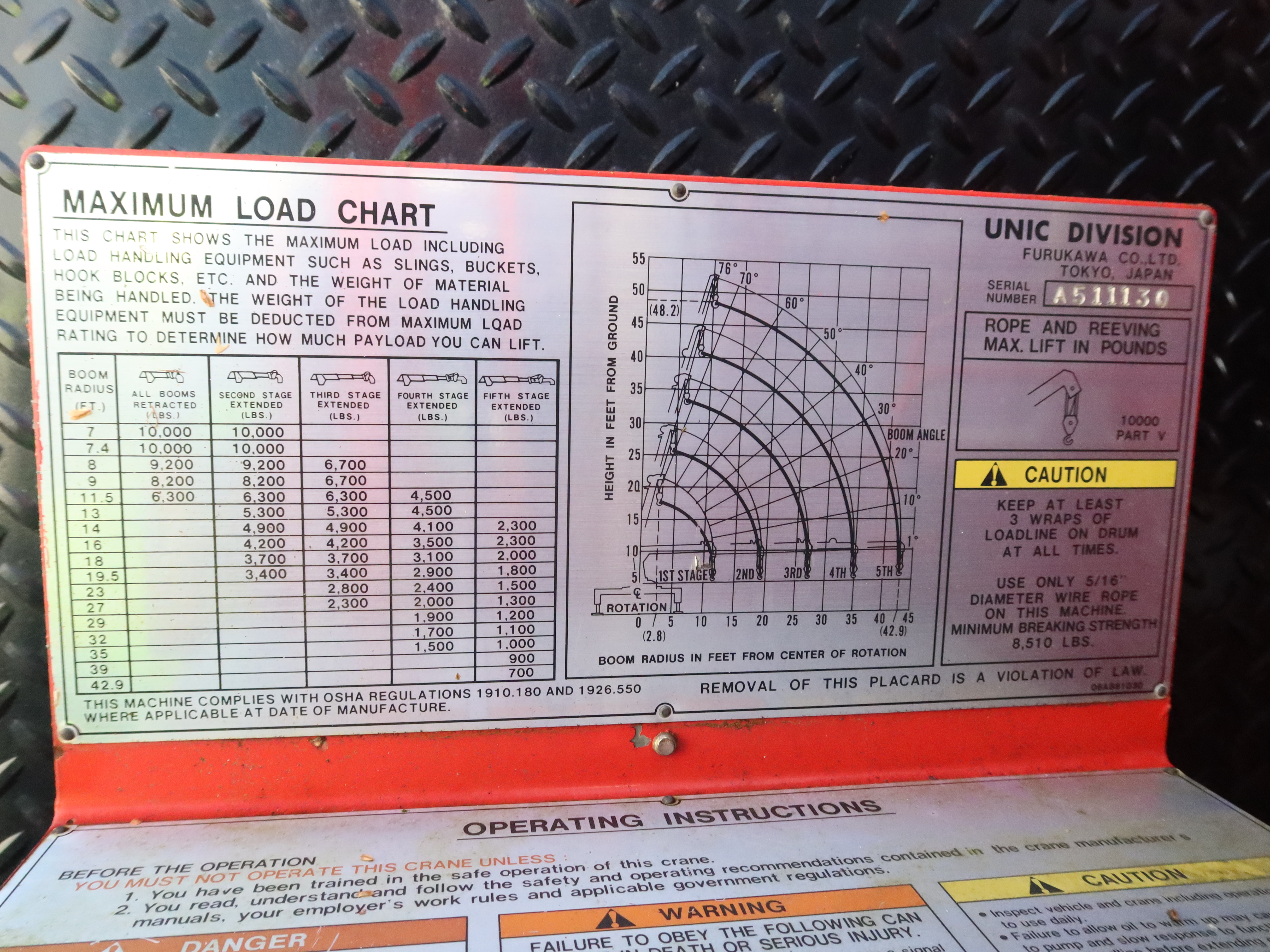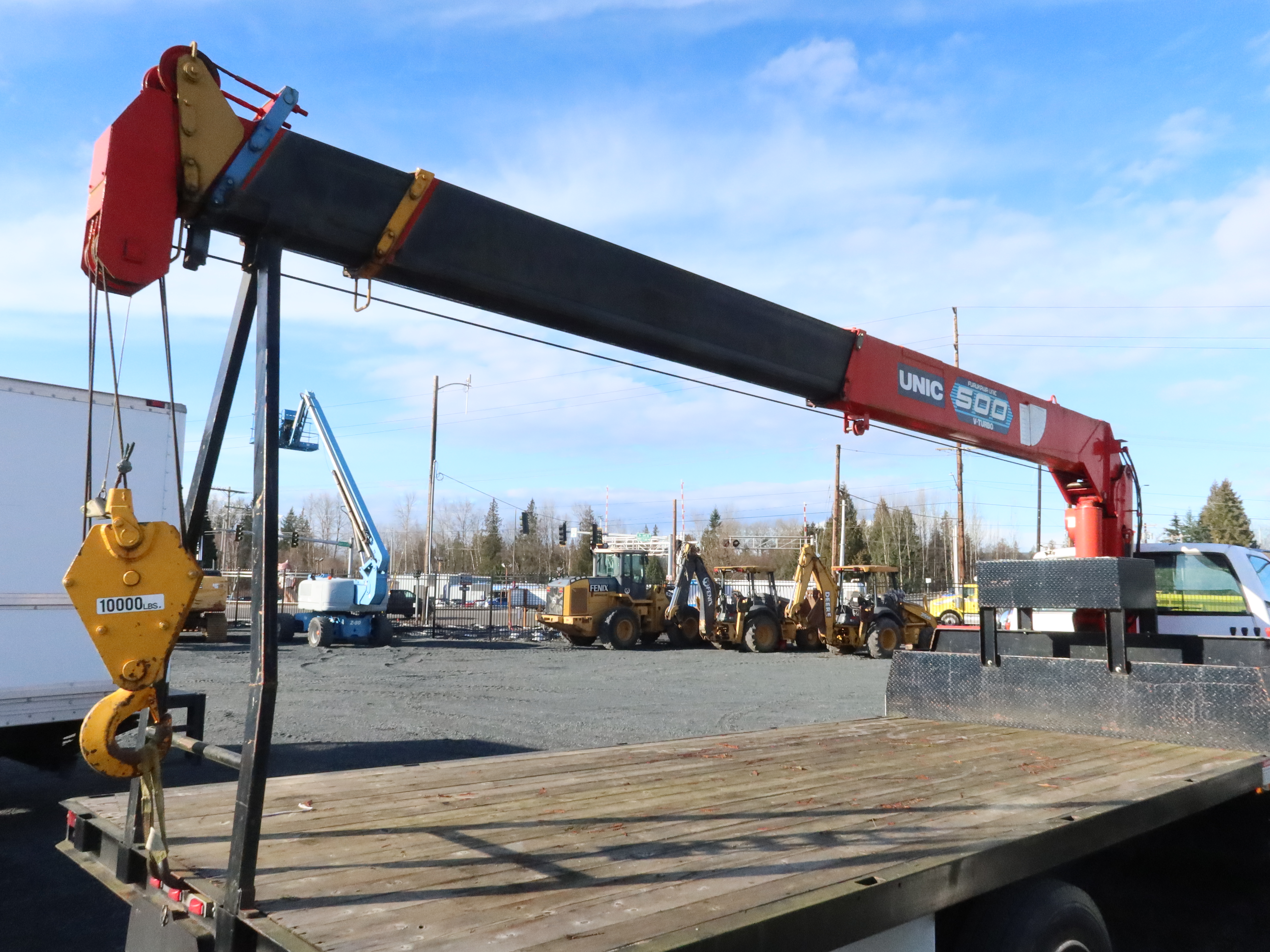 CRANE TRUCK, UNIC UR505-A2R, 10,000 LB/48.2, 5-SECTION BOOM, STABILIZERS, 17' FLATBED, 427 V8, AUTO