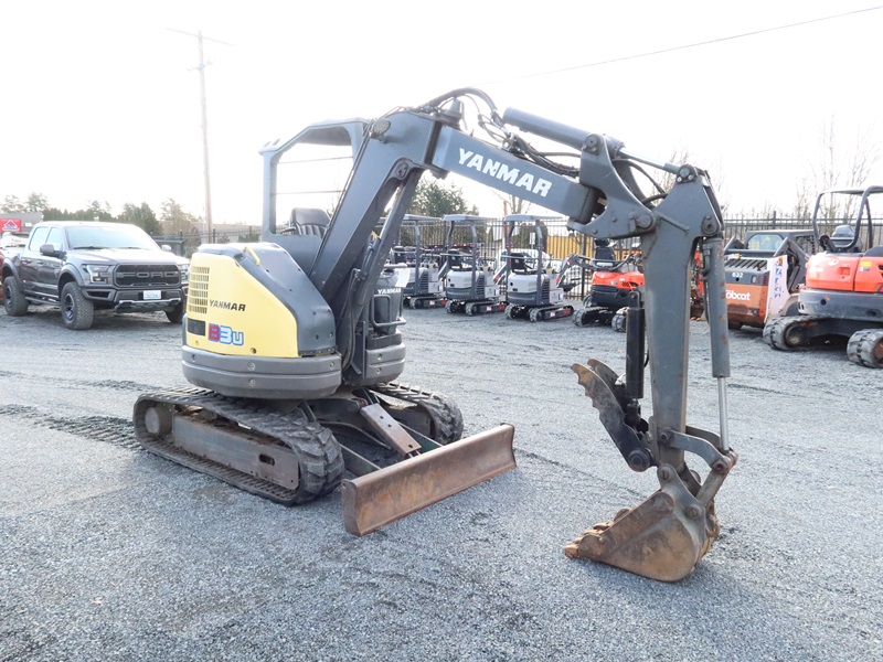 MINI EXCAVATOR, 3 CYL DIESEL, OFFSET BOOM , HYD THUMB, 16" BUCKET, BLADE, RUBBER TRACKS, CANOPY
