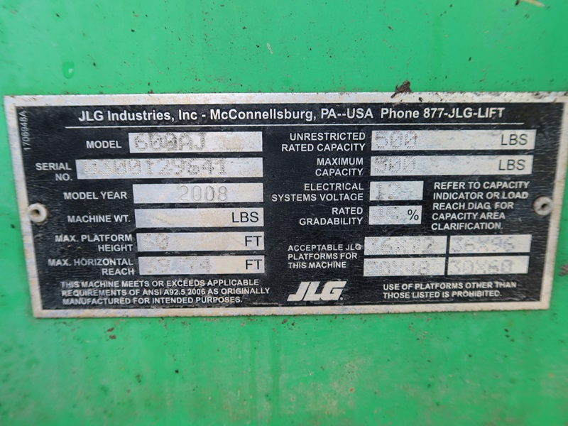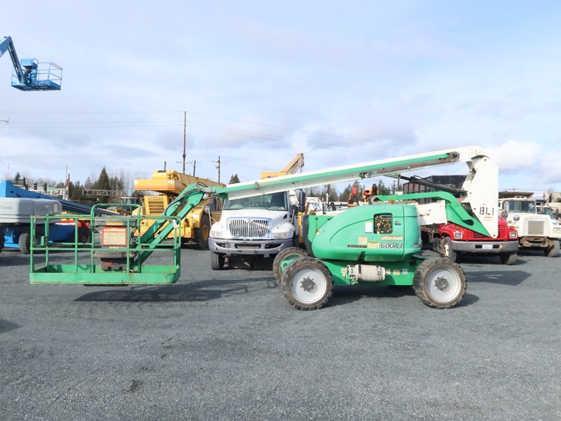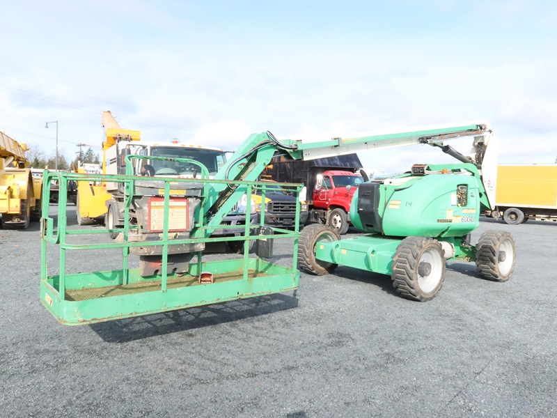 4WD ARTICULATING BOOM LIFT, 60'7" PLATFORM HEIGHT, 39'9" HORIZONTAL OUTREACH, 500 LB PLATFORM CAPACITY, 120V A/C RECEPTACLE ON PLATFORM, 84 HP FORD MSG425 LPG/GAS (*CONSIGNOR DISCLOSURE: ONLY RUNS ON LPG INTERMITTENT CODE)