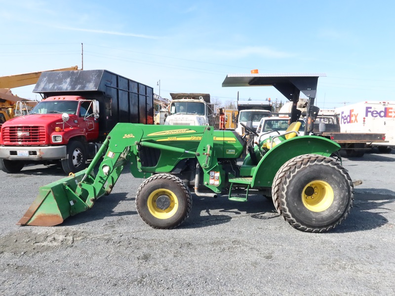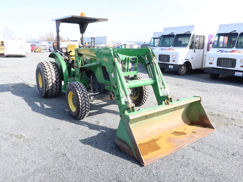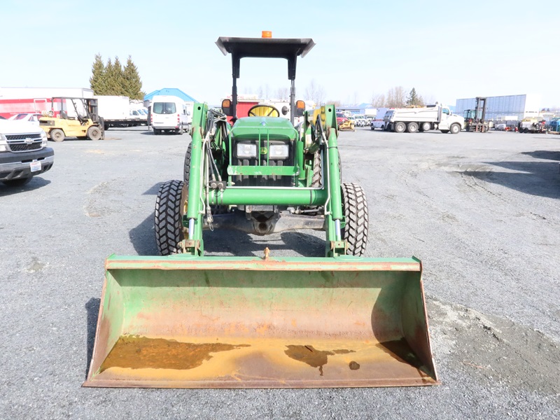 MFWD TRACTOR, 56 HP, 3.1L DIESEL, 9F/3R SYNC SHUTTLE, 542 LOADER BUCKET, R (3) REMOTES, L (1) AUX HYD, PTO, 3 POINT, CANOPY