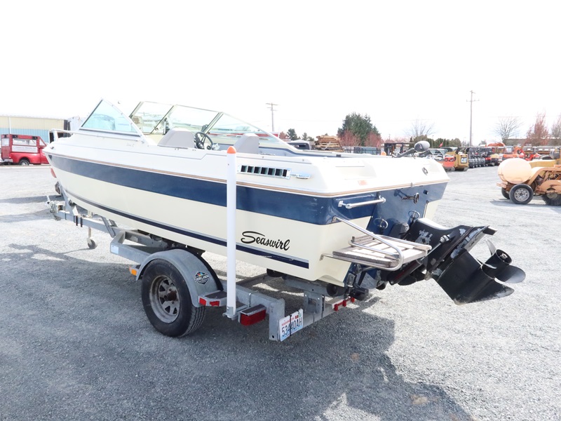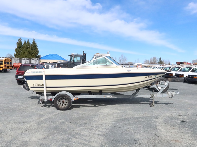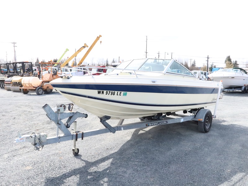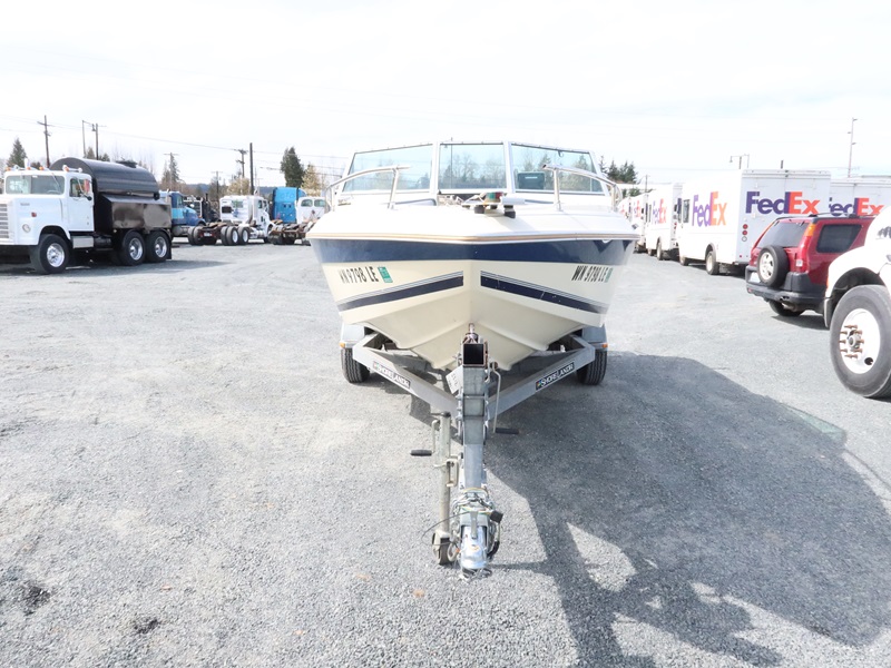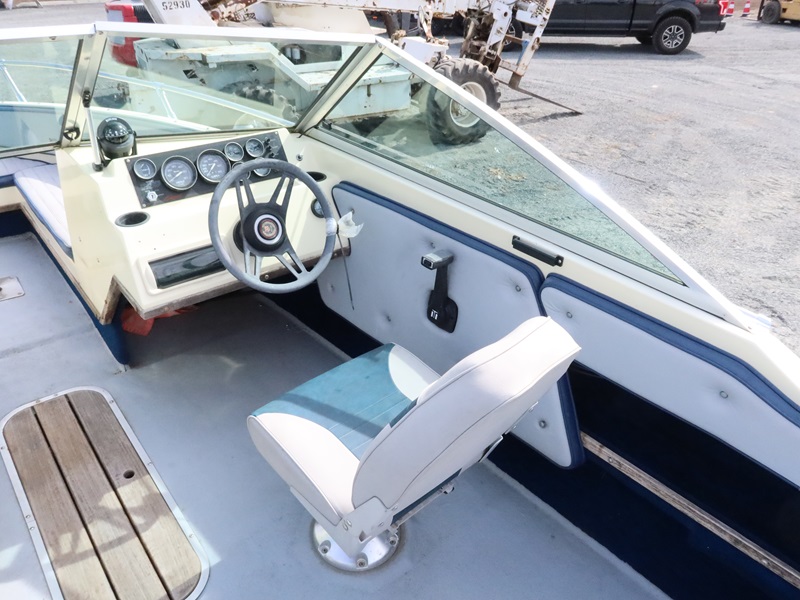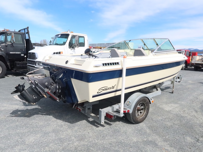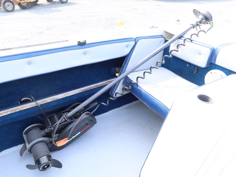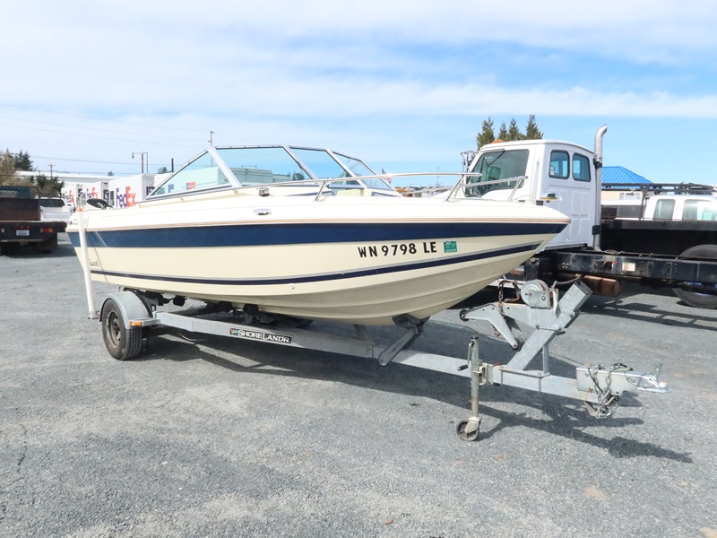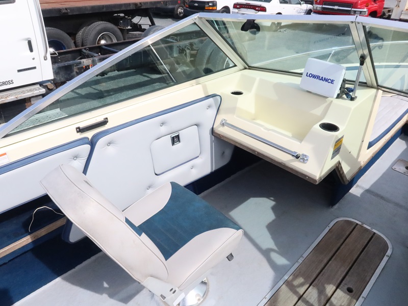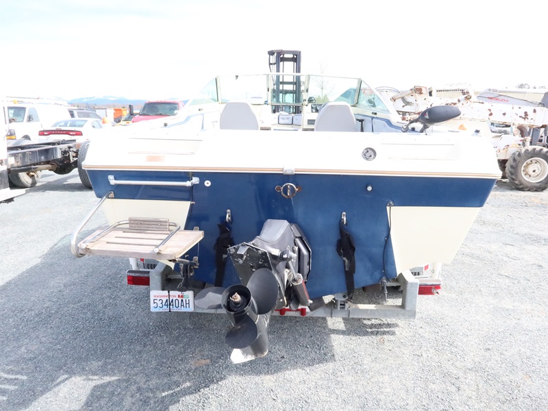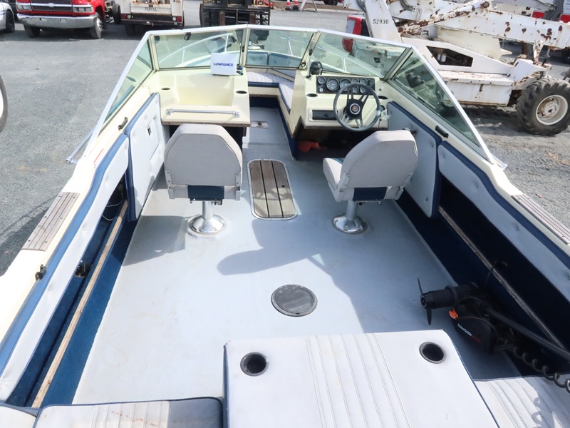 18' OPEN BOW CRUISER, OMC 4.3L V6 ENGINE, OMC COBRA OUTDRIVE, 12V MOTOR GUIDE W55 TROLLING MOTOR, LOWRANCE HDS5 FISHFINDER, HOUR METER READS: 574 W/1987 SHORELAND'R S/A GALVANIZED BOAT TRAILER, SURGE BRAKES S/N: 1MDBEET16HG322546