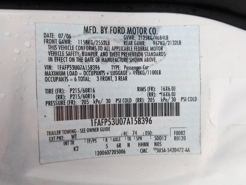2007 FORD TAURUS 4DR SEDAN