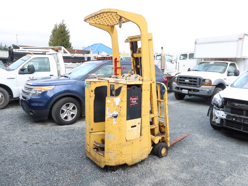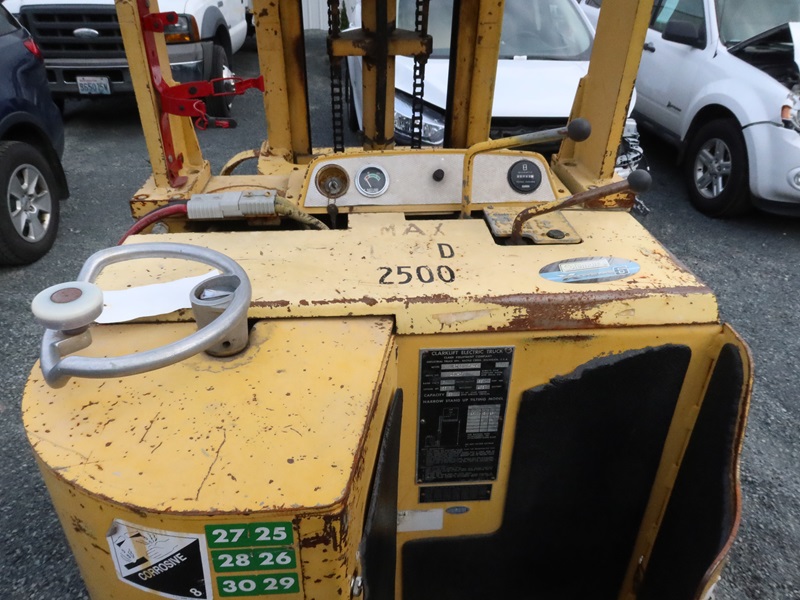 2,500 LB, 24V 130" LIFT HEIGHT STAND ON LIFT TRUCK (BATTERIES DEAD, CONDITION UNKNOWN, PLEASE PREVIEW)
