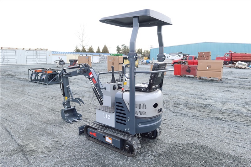 MINI EXCAVATOR, BRIGGS & STRATTON XR 1 CYL, FIXED THUMB, AUX HYD, 14" BUCKET, BLADE, RUBBER TRACKS, CANOPY (UNUSED, HOUR METER MALFUNCTION)