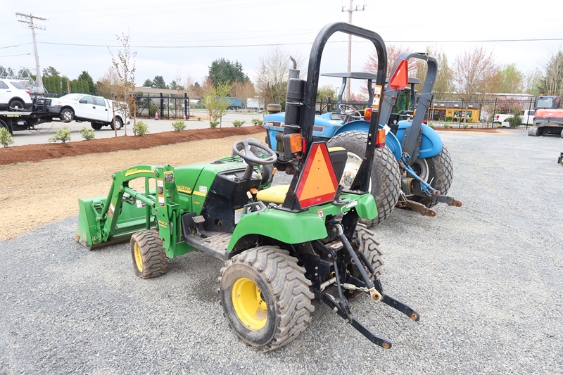 MFWD TRACTOR, 24 HP YANMAR 1.1L, 2-RANGE HYDROSTATIC, LOADER BUCKET, PTO, 3 POINT HITCH, 60" ANGLE BLADE ATTACHMENT