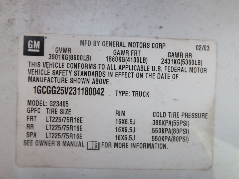 2003 CHEV 2500 CARGO VAN
