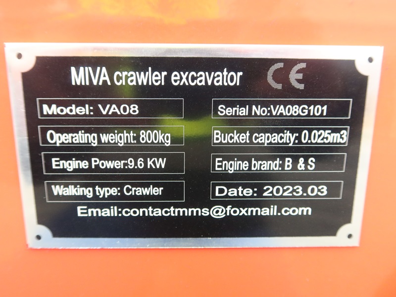 MINI EXCAVATOR, 13.5 HP BRIGGS & STRATTON XR, FIXED THUMB, AUX HYD, 10" BUCKET BLADE, RUBBER TRACKS, CANOPY
