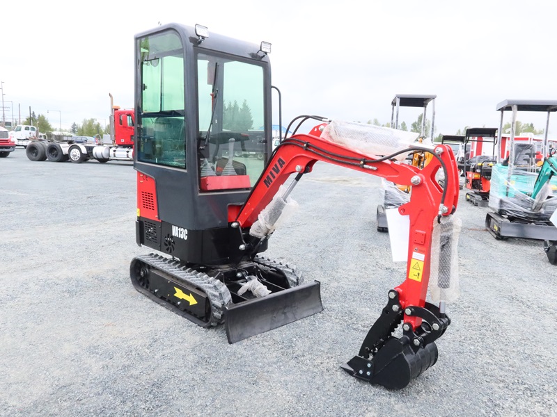 MINI EXCAVATOR, 13.5 HP BRIGGS & STRATTON XR, AUX HYD, 14" BUCKET, BLADE, RUBBER TRACKS, CAB