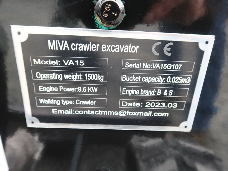 MINI EXCAVATOR, 13.5 HP BRIGGS & STRATTON XR, FIXED THUMB, AUX HYD, 14" BUCKET BLADE, RUBBER TRACKS, CANOPY