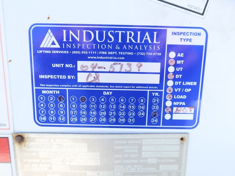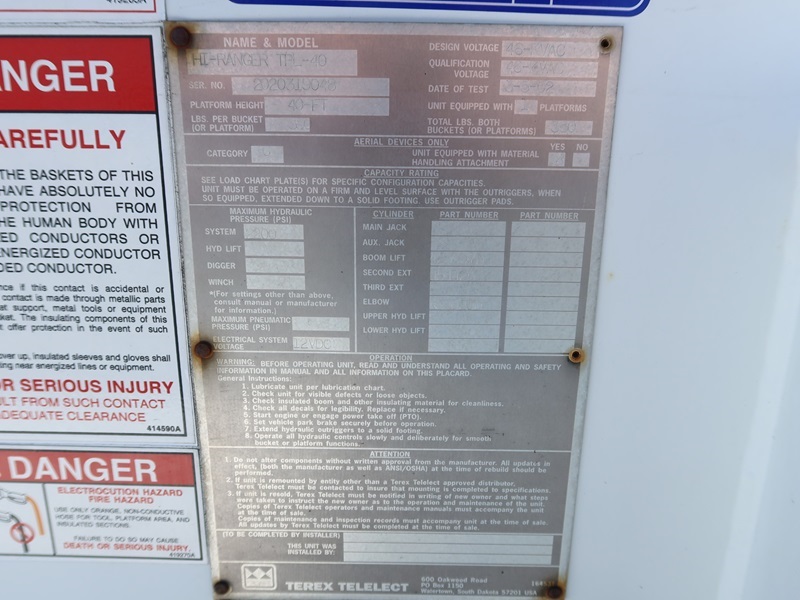 BUCKET TRUCK, DT466, AUTO, TEREX HI-RANGER TPL-40, 40', 350 LB