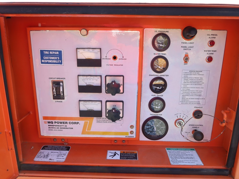 S/A, 25 KVA TRAILER MOUNTED GENERATOR, ISUZU QD-60 4 CYL DIESEL, 120/240/480V, SINGLE/3 PHASE, 175/80R13 (NEEDS REPAIR, OUTLETS MISSING, PLEASE PREVIEW)