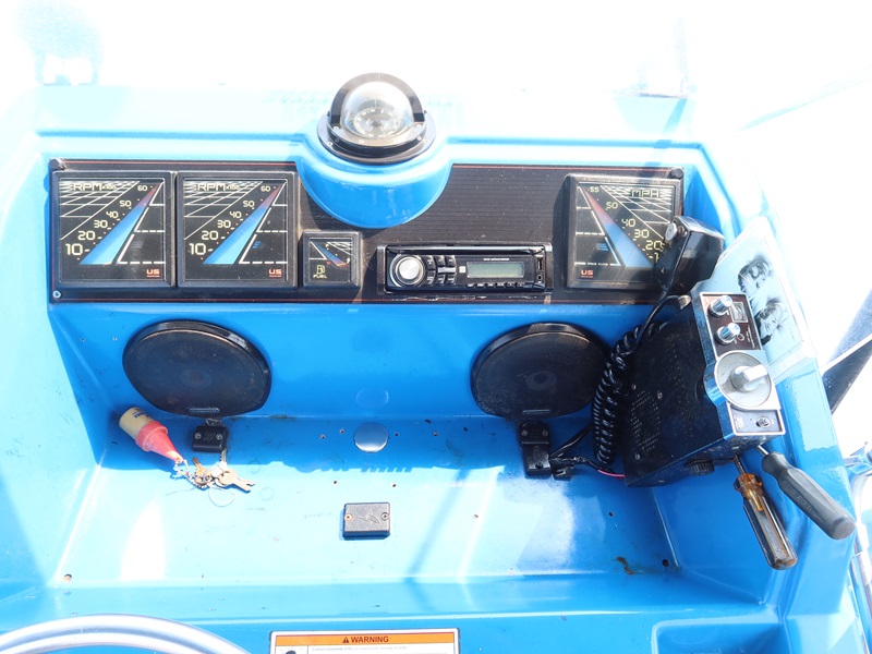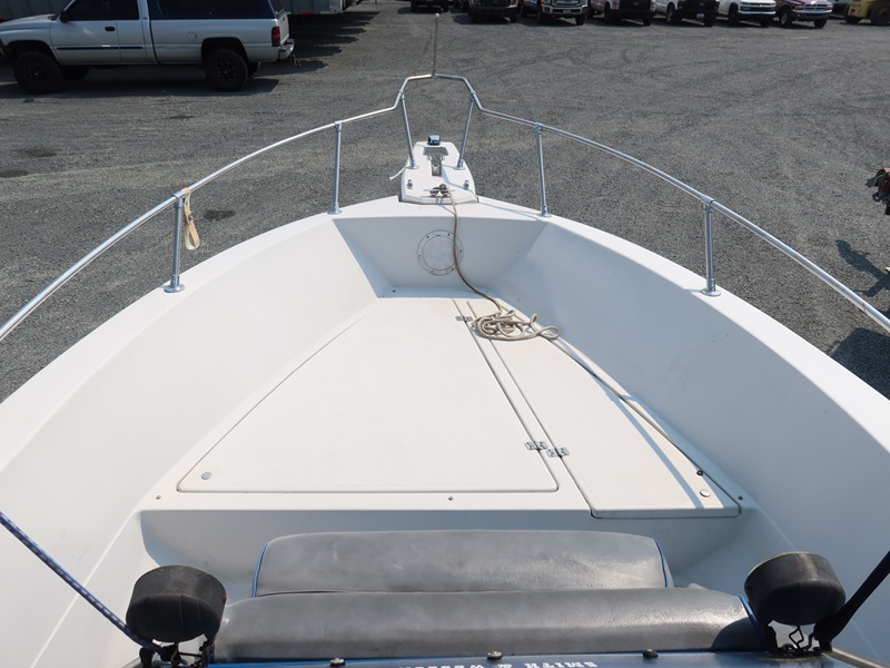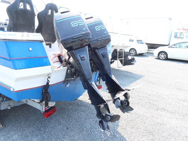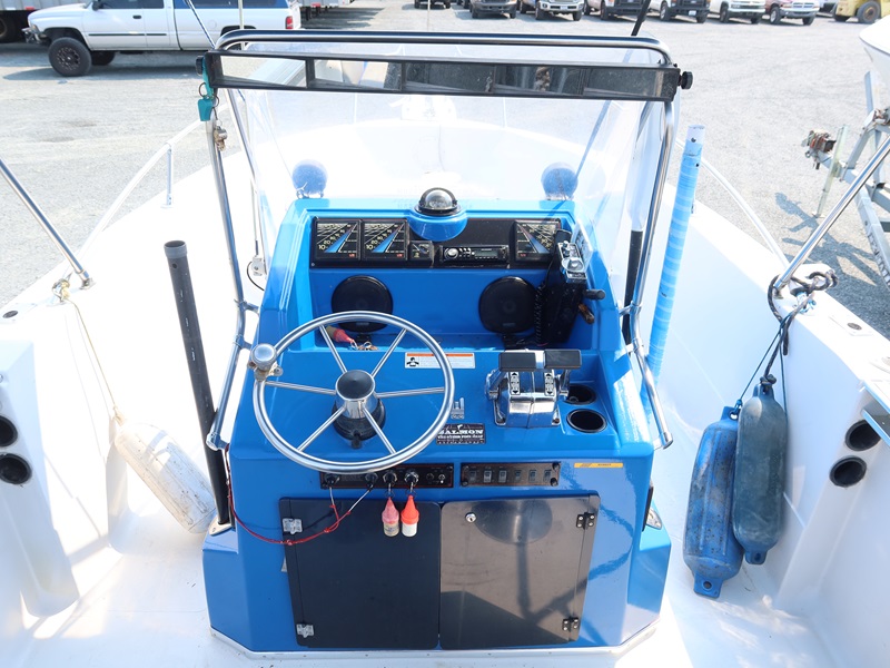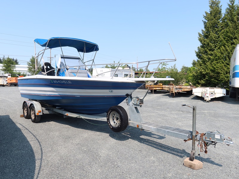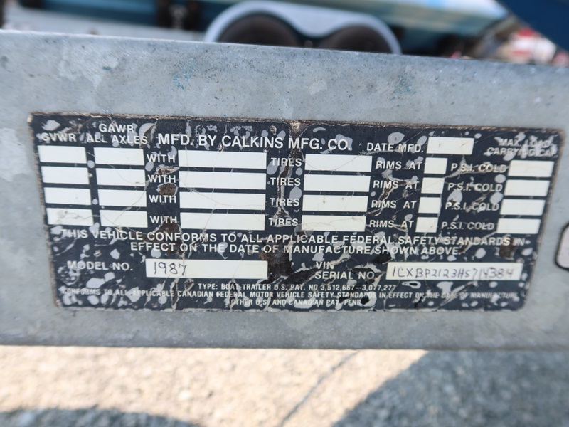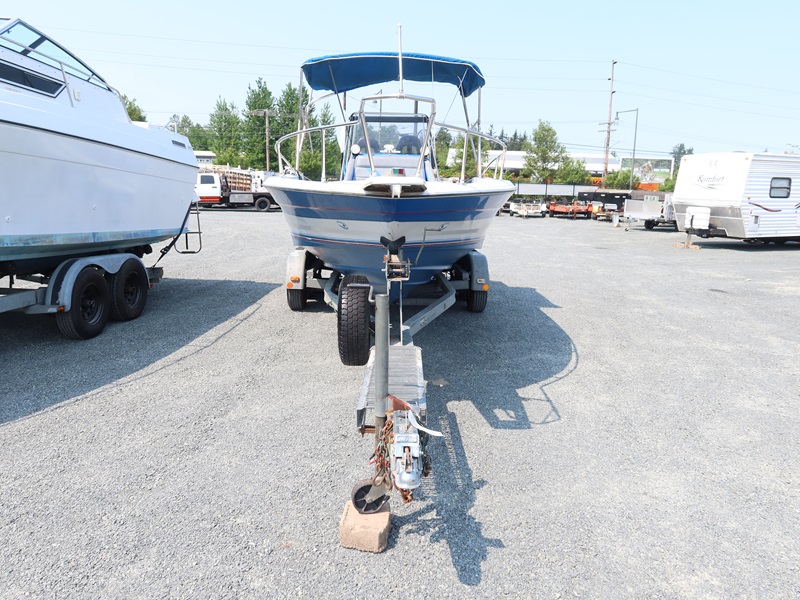 20' OPEN BOW, CONSOLE HELM RUN ABOUT BOAT, TWIN US MARINE FORCE 853X8A 85 HP OUTBOARD ENGINES, CANVAS SUN TOP W/1987 CALKINS ESCORT T/A GALVANIZED BOAT TRAILER, SURGE BRAKES, 205/75R14 S/N: 1CXBP2123HS714384