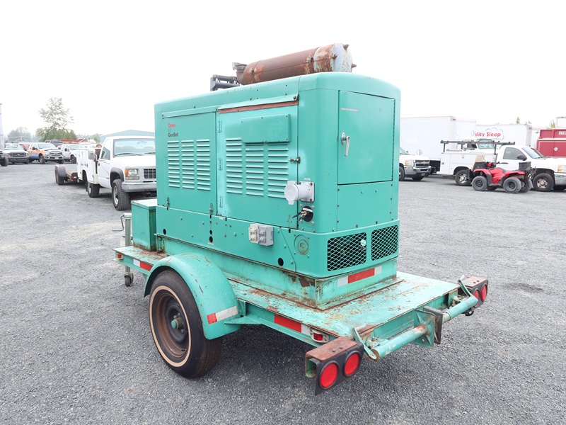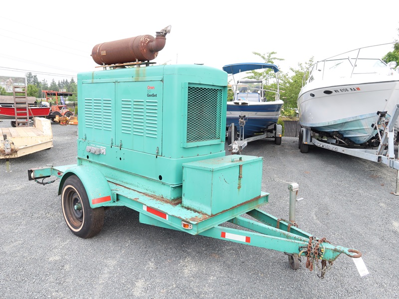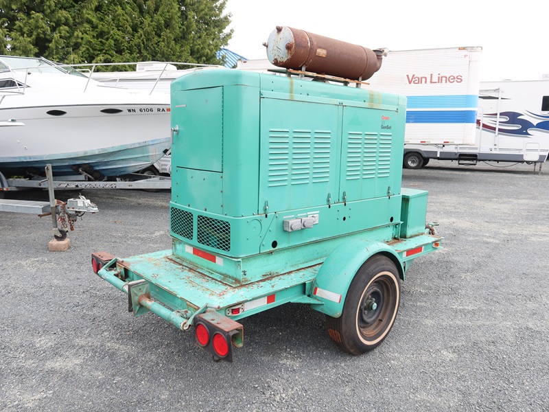 S/A, 30 KW TRAILER MOUNTED GENERATOR, FORD 6 CYL GAS ENGINE, ELECT BRAKES, 120/240/480V, SINGLE OR 3 PHASE, 215/75B15 (TURNS OVER, WILL NOT START)