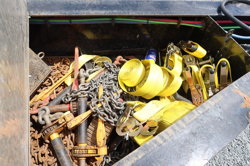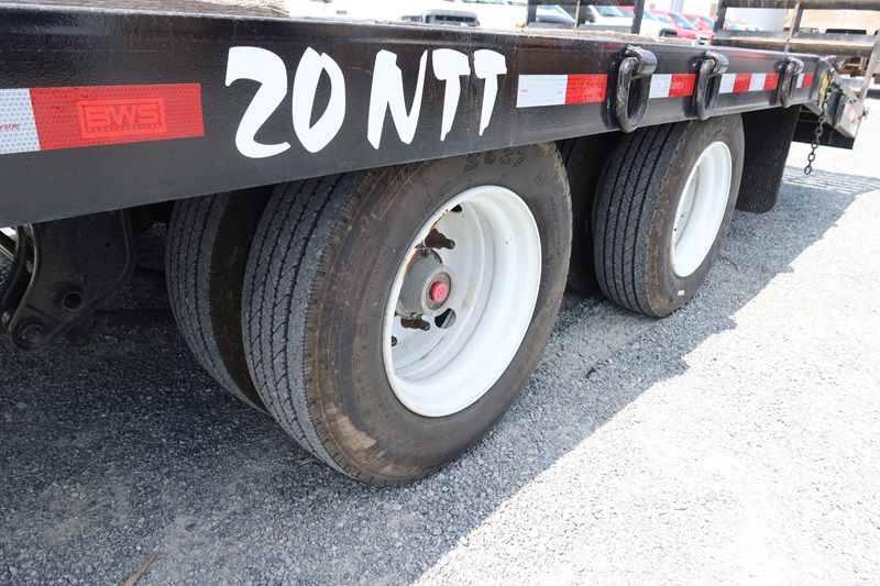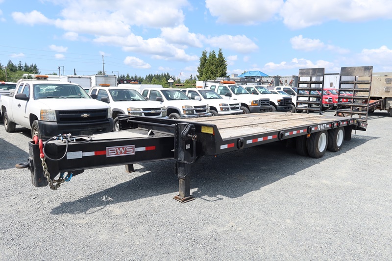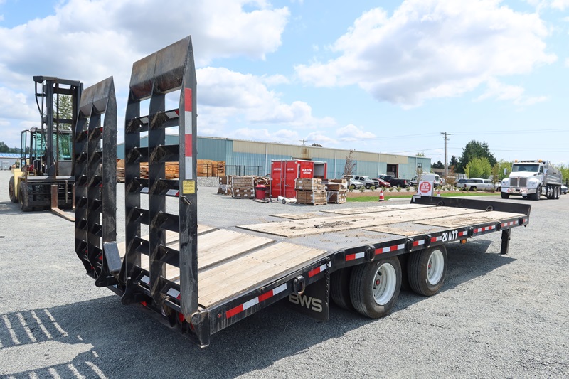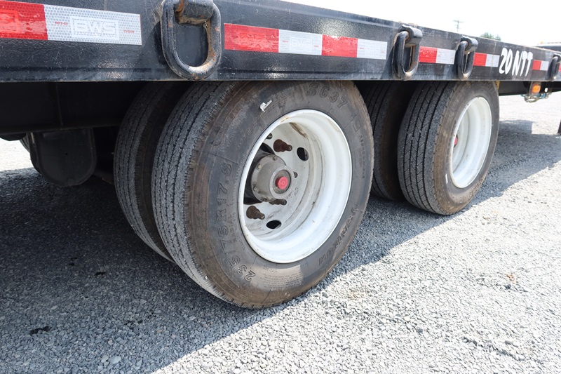T/A, 25', 51,000 LB GVWR EQUIPMENT TRAILER, 20' MAIN DECK + 5' BEAVERTAIL SPRING SUSPENSION, A/B, FOLD DOWN RAMPS (BROKEN GLADHAND ON AIR LINE)