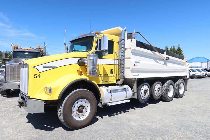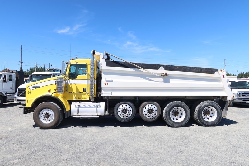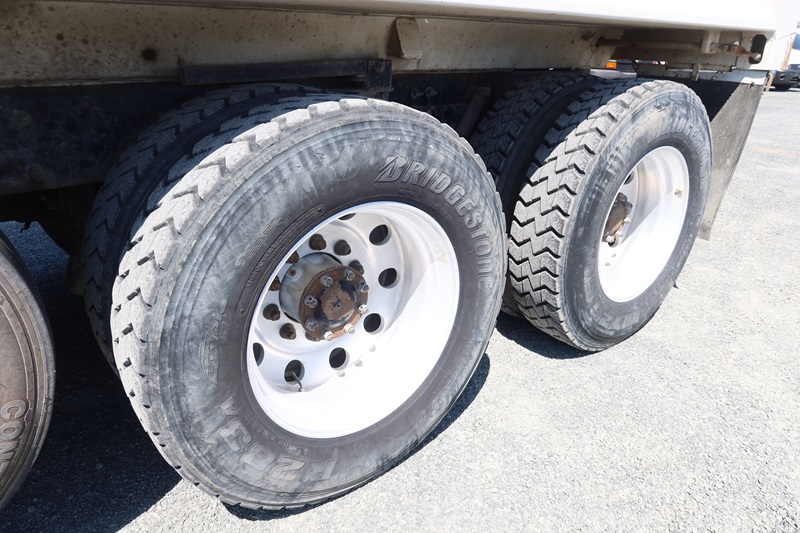 QUAD/A DUMP TRUCK, 17' DUMP TRUCK, 17' STEEL BOX, TARP SYSTEM, 550 HP CUMMINS ISX15, 18 SPD, CHALMERS SUSPENSION, 235" W/B, 20,000 LB FRONT, 46,000 LB REARS, 4.10 RATIO, (2) DROP AXLES, PLUMBED FOR PUP