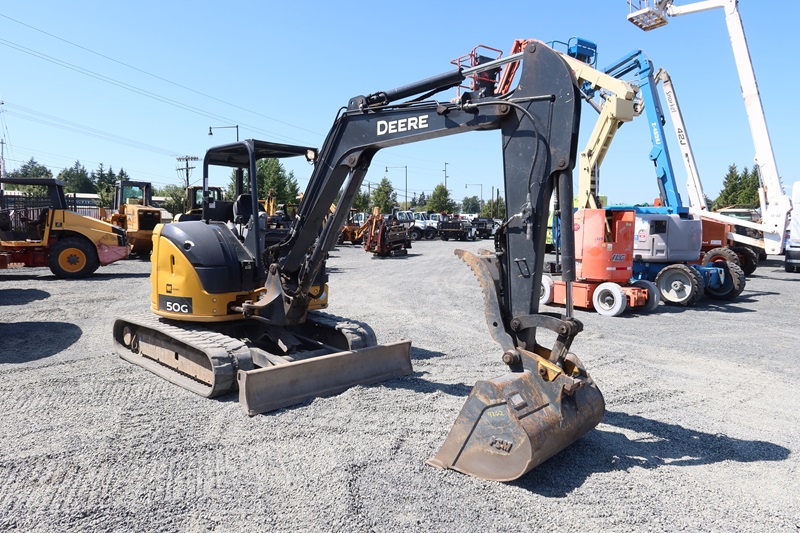MINI EXCAVATOR, 35.9 HP YANMAR 4TNV88C SWING BOOM, HYD THUMB, AUX HYD, QC 48" CLEANOUT BUCKET, BLADE, RUBBER TRACKS, CANOPY