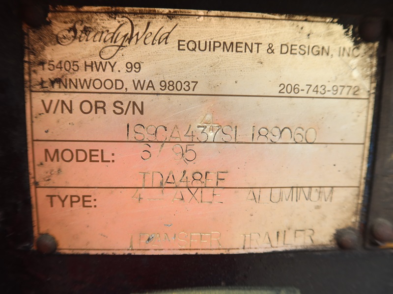 QUAD/A, 52,900 LB GVWR TRANSFER TRAILER, SPRING SUSPENSION, FRONT TURN TABLE, STEER AXLE, AIR TONGUE, A/B, 12R22.5