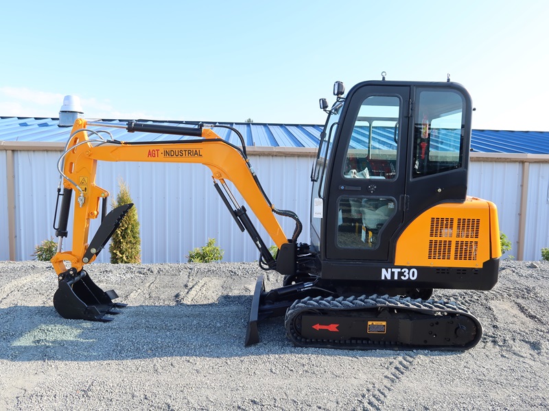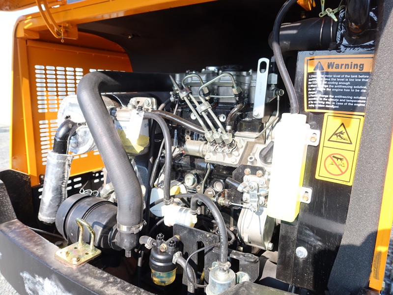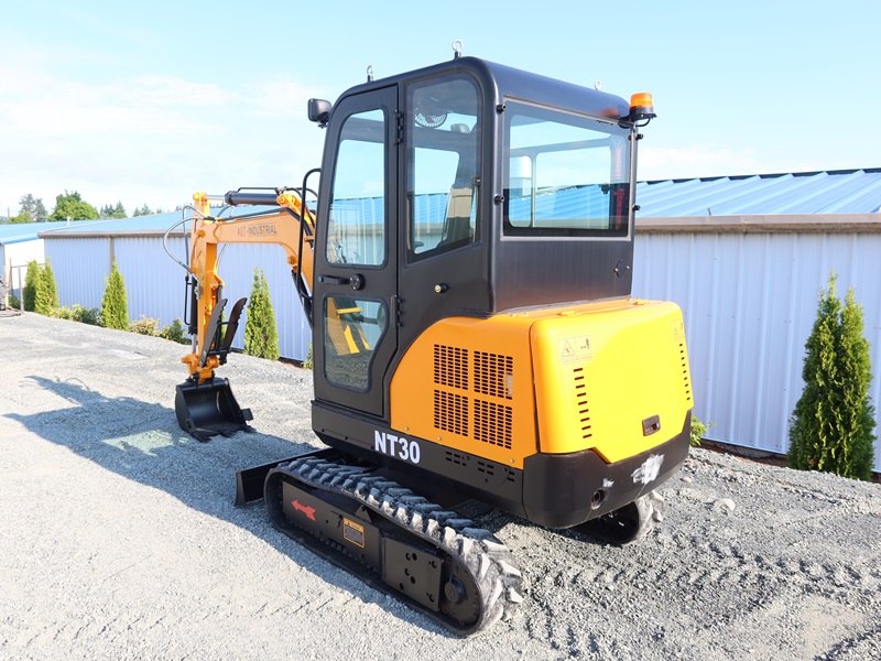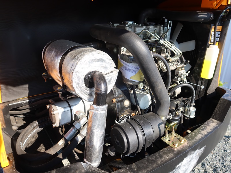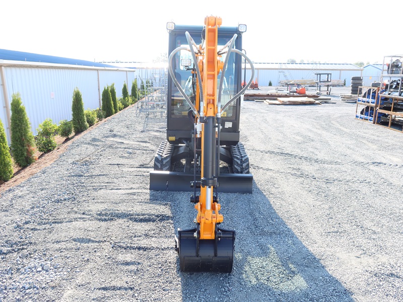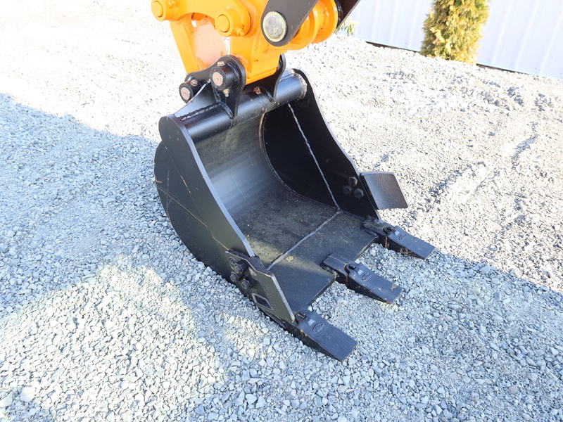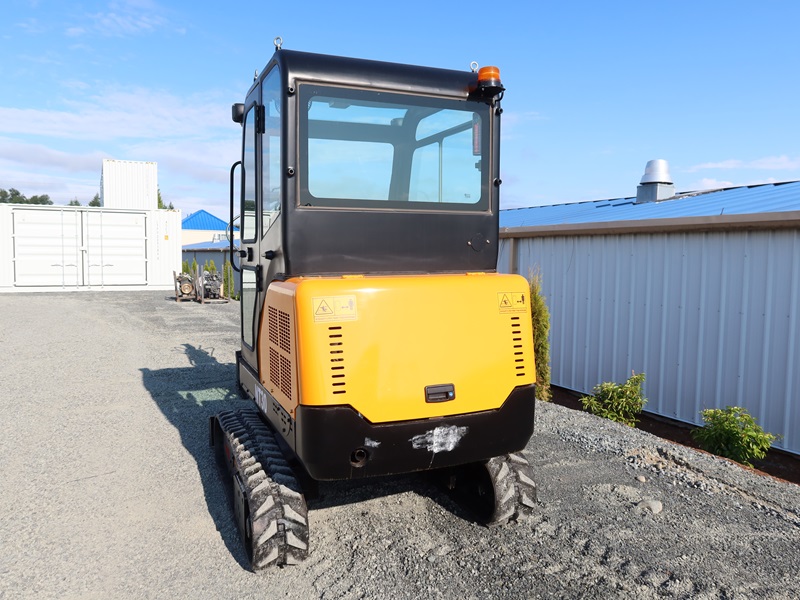 MINI EXCAVATOR, PERKINS 3 CYL DIESEL, FIXED THUMB, AUX HYD, 17" BUCKET, BLADE, RUBBER TRACKS