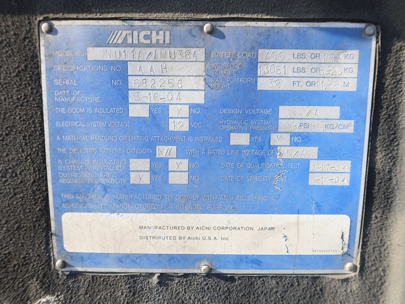 CAB/OVER, BUCKET TRUCK, AICHI NULLA/INU38A, 38', 400LB, OUTRIGGERS, 4 CYL DIESEL, AUTO