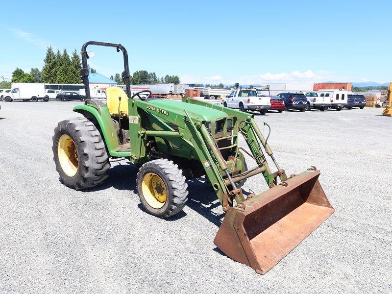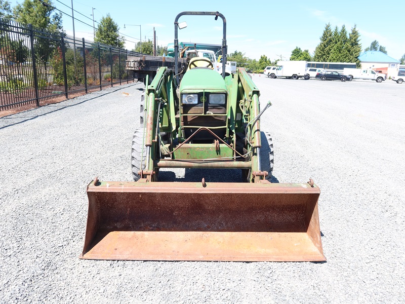 MFWD TRACTOR, 42.8 HP YANMAR 4TNE84 12F/12R POWER REVERSER, JD460 LOADER BUCKET, (2) REMOTES, PTO, 3 POINT HITCH