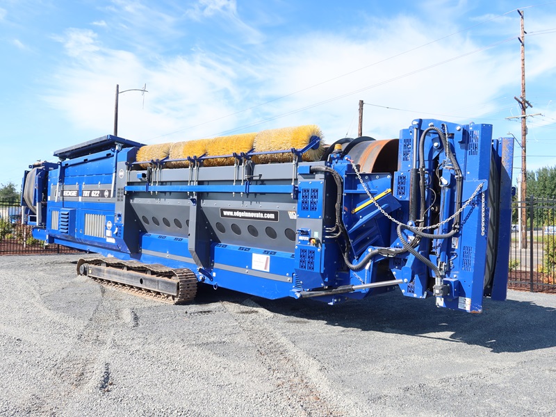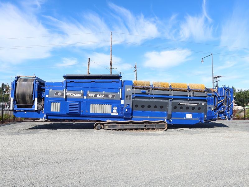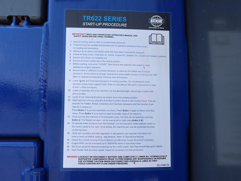 TRACK MOUNTED TROMMEL SCREEN, CAT 129 HP DIESEL, HYD GRIZZLY FEEDER, 180 DEGREE DISCHARGE CONVEYOR, FRONT CHEVRON DISCHARGE CONVEYOR, BROOM CLEANERS, 5/8" TROMMEL SCREEN, REMOTE, ENGINE HOURS 480 MACHINE HOURS 260