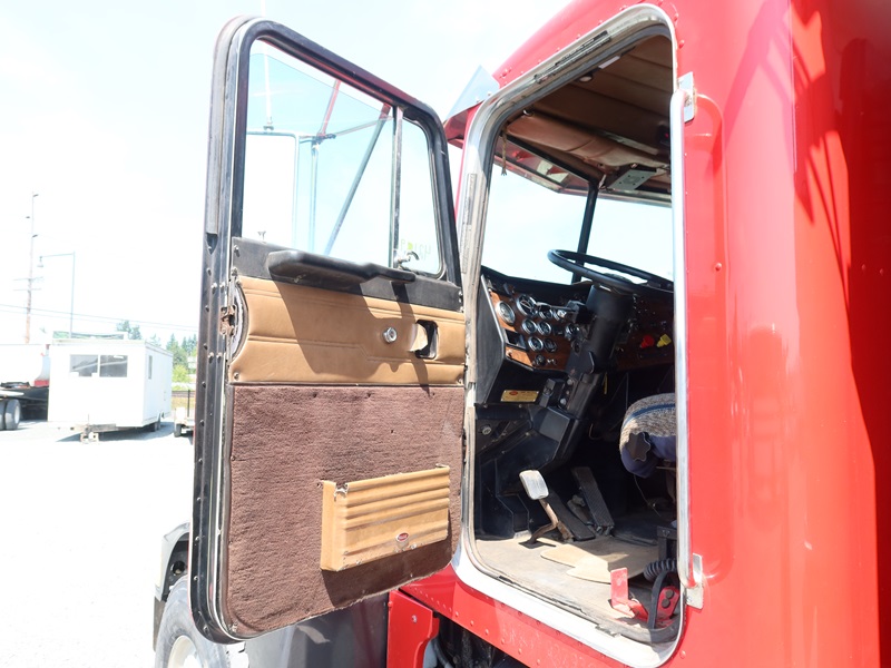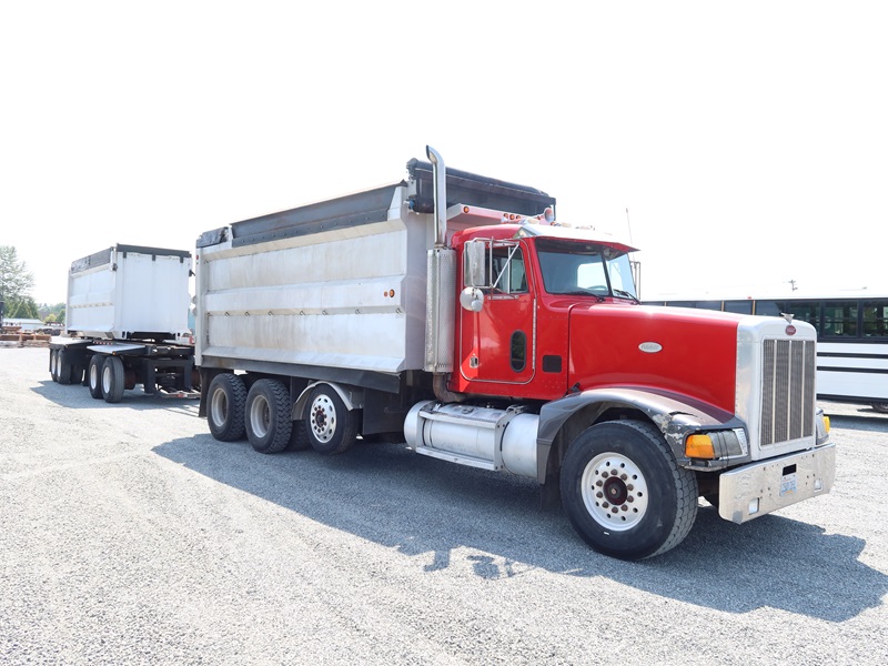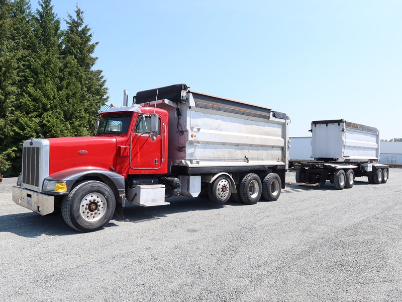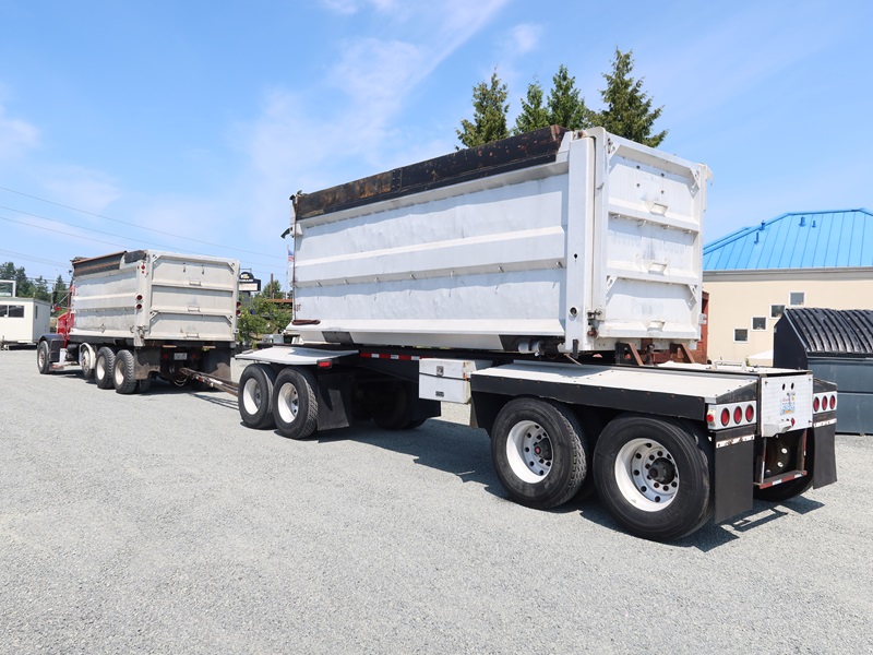 TRI/A TRANSFER TRUCK, 17' ALUMINUM BOX, CAT 3406, 18 SPD, AIR SUSPENSION, 256" W/B, 12,000 LB FRONT, 40,000 LB REARS, DROP AXLE, A/B WITH QUAD/A TRANSFER TRAILER, 19' ALUMINUM BOX, A/B, 12R22.5, ( REBUILT TITLE )