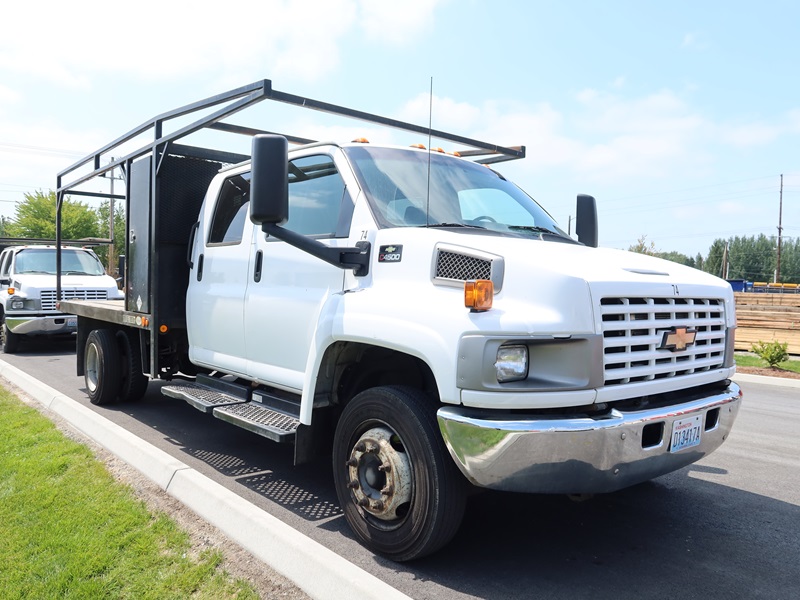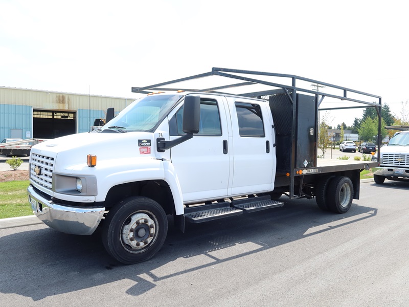 CREW CAB 12' FLATBED, V8, AUTO