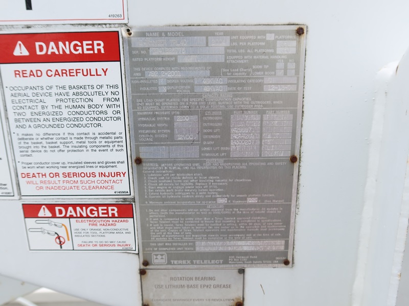 BUCKET TRUCK, TEREX HI-RANGER TPL 40, 40', 350LB, DT466, AUTO, A/B