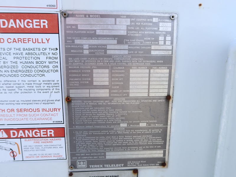 BUCKET TRUCK, TEREX HI-RANGER TPL 40, 40', 350LB, DT466, AUTO, A/B