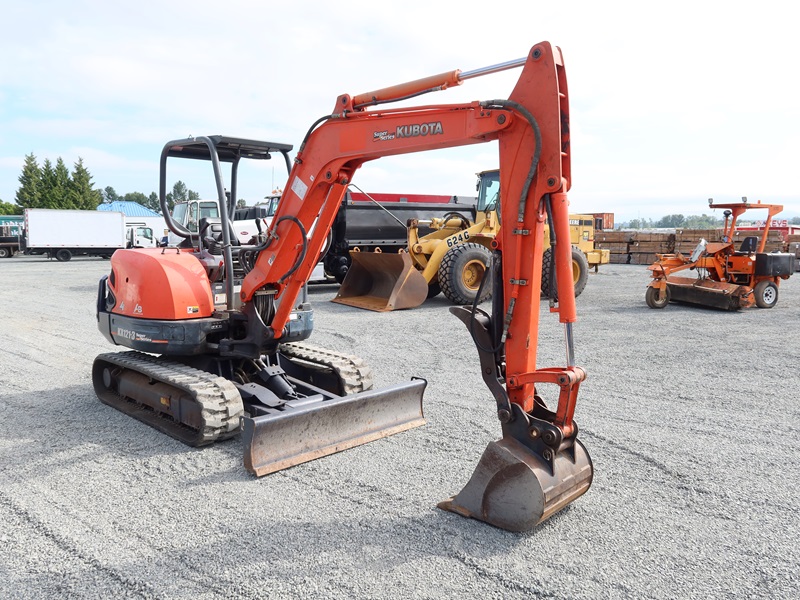 MINI EXCAVATOR, 39 HP V2203 SWING BOOM, AUX HYD, HYD THUMB, QC 24" BUCKET, 4-WAY BLADE, RUBBER TRACKS, CANOPY