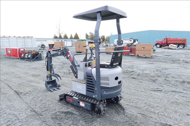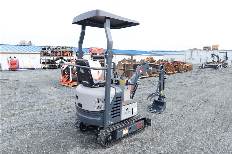 MINI EXCAVATOR, BRIGGS & STRATTON XR, 1 CYL, FIXED THUMB, AUX HYD, 14" BUCKET, BLADE, RUBBER TRACKS, CANOPY (UNUSED, HOUR METER MALFUNCTION)