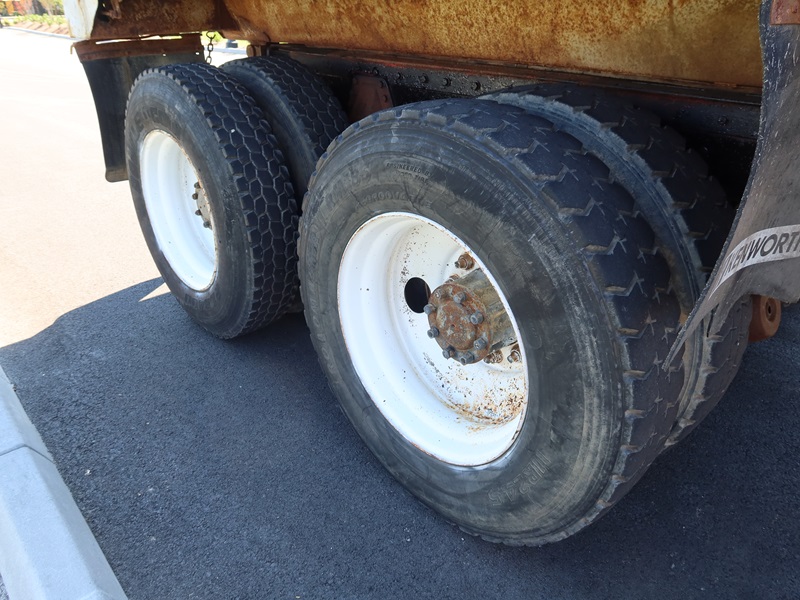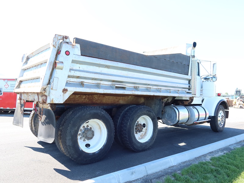 T/A, DUMP TRUCK, 14' STEEL BOX, CUMMINS NTC400BC, 13 SPD, SPRING BEAM SUSPENSION, 207" W/B, 5,442LB FRONT, 8,617LB REARS, 4.11 RATIO, 2 SPD REARS, A/B