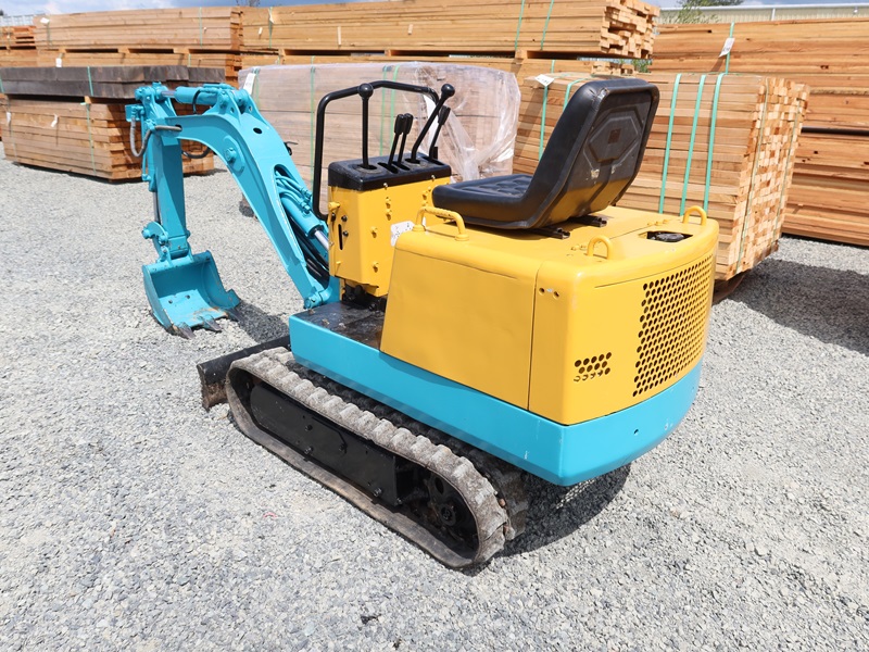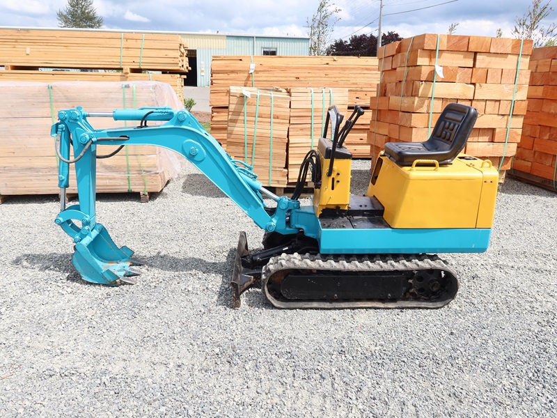 MINI EXCAVATOR, 2 CYL DIESEL, SWING BOOM, 14" BUCKET, BLADE, RUBBER TRACKS, CANOPY