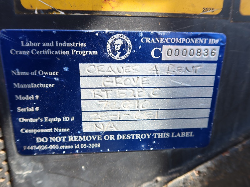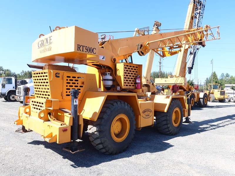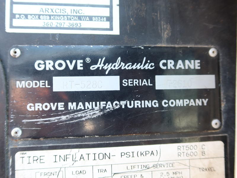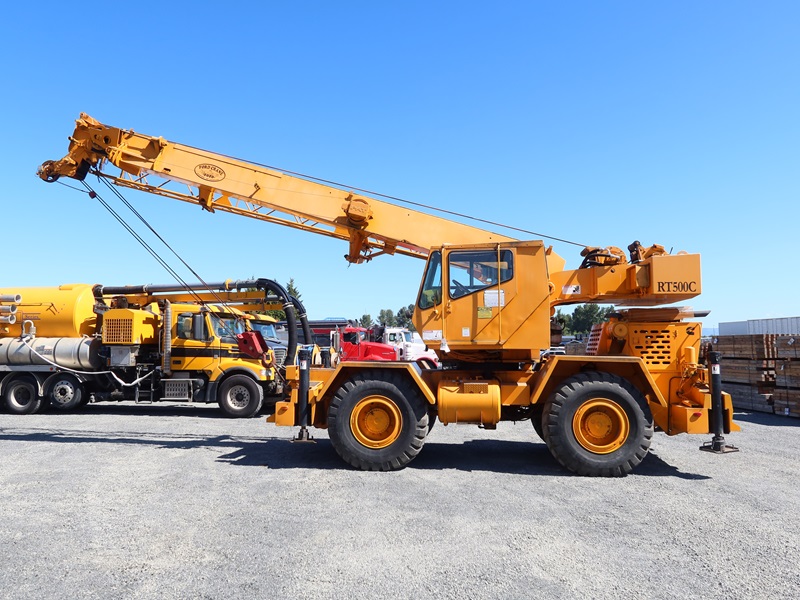 28 TON ROUGH TERRAIN CRANE, 28'-70' 3-SECTION BOOM, 25' EXTENTION, 3 SHEAVE BLOCK, PAT DS350G, CUMMINS 5.9, CAB, LPG HEAT, 20.5R25 (CONSIGNOR DISCLOSURE: "BOOM LEAKS DOWN")