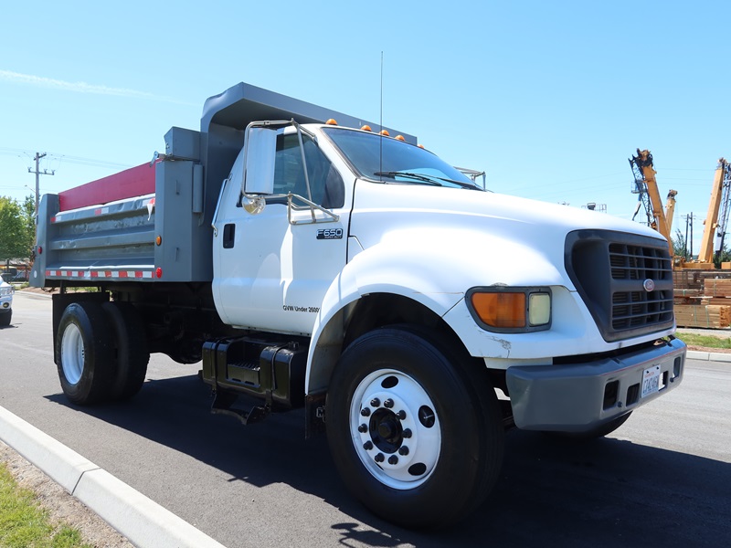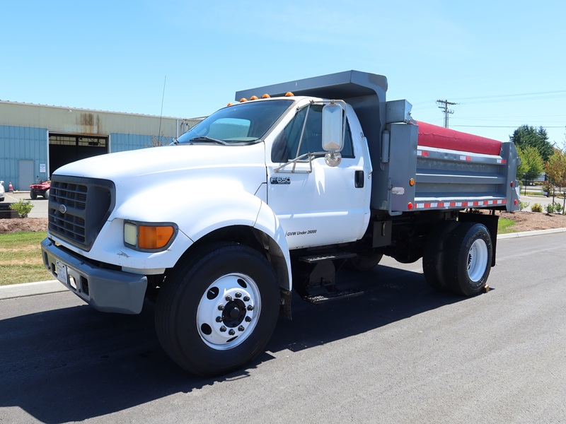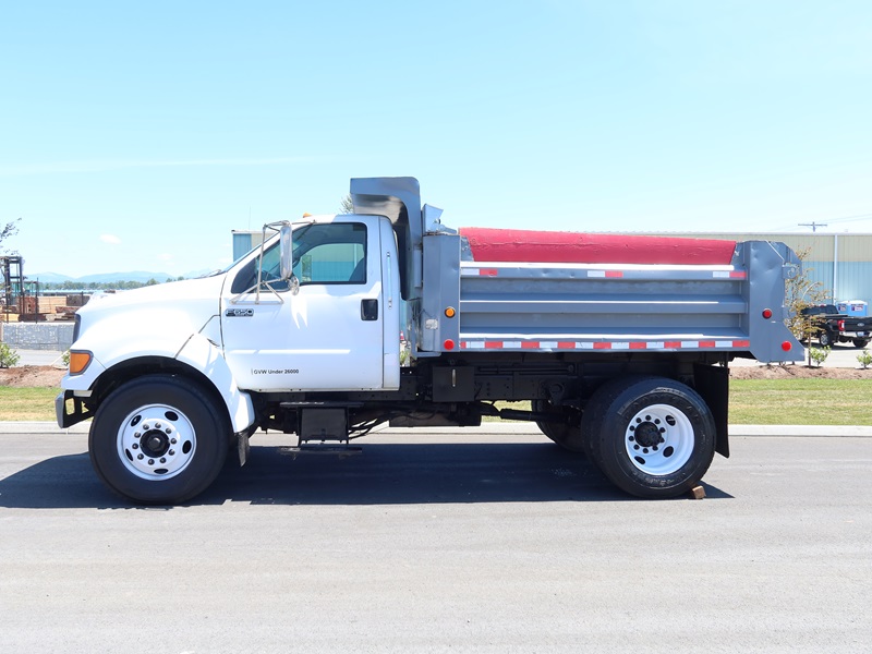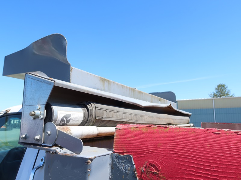 DUMP TRUCK, 10' STEEL BOX, TARP SYSTEM, CAT 6 CYL DIESEL, 6 SPD, SPRING SUSPENSION