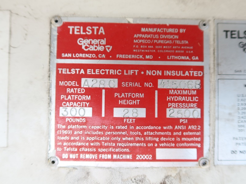 BUCKET TRUCK, TELSTA A28C, 28', 300 LB, V8, AUTO