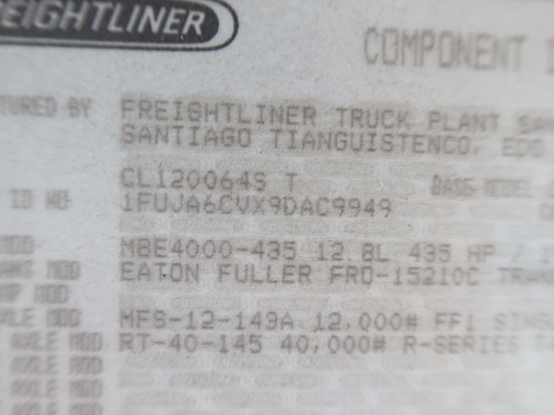 T/A, TRACTOR, 435 HP MERCEDEZ OM460, 10 SPD, AIR SUSPENSION, 181" W/B, 12,000 LB FRONT, 40,000 LB REARS, SLIDER, A/B (CHECK ENGINE LIGHT IS ON)
