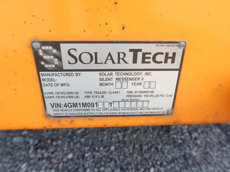 S/A, TRAILER MOUNTED SOLAR MESSAGE BOARD, 185/80D13