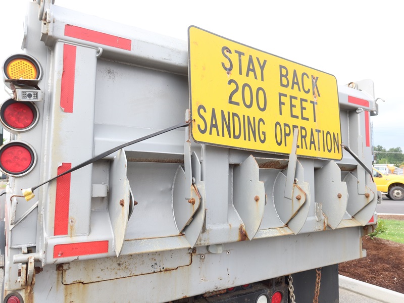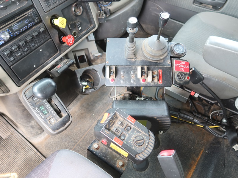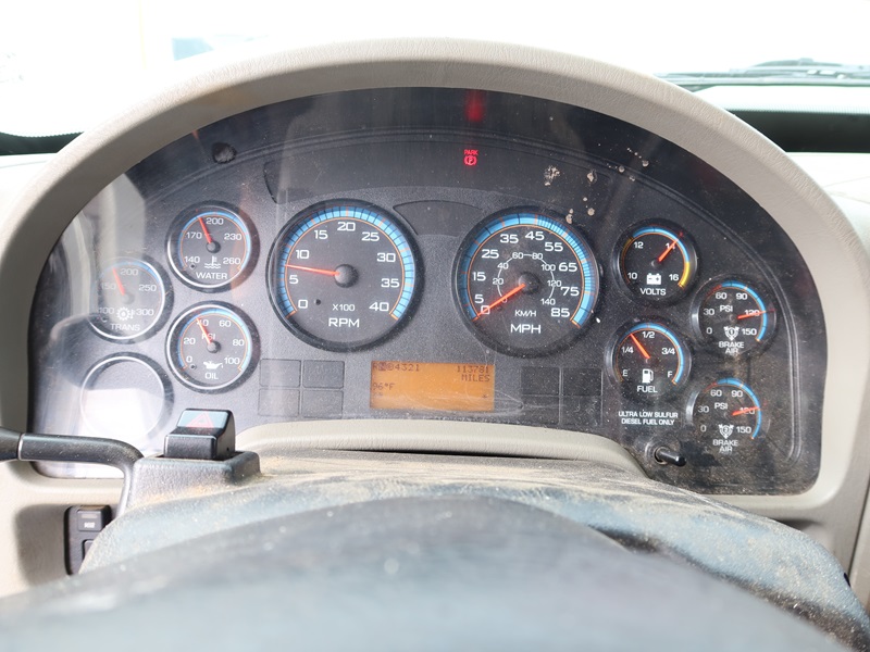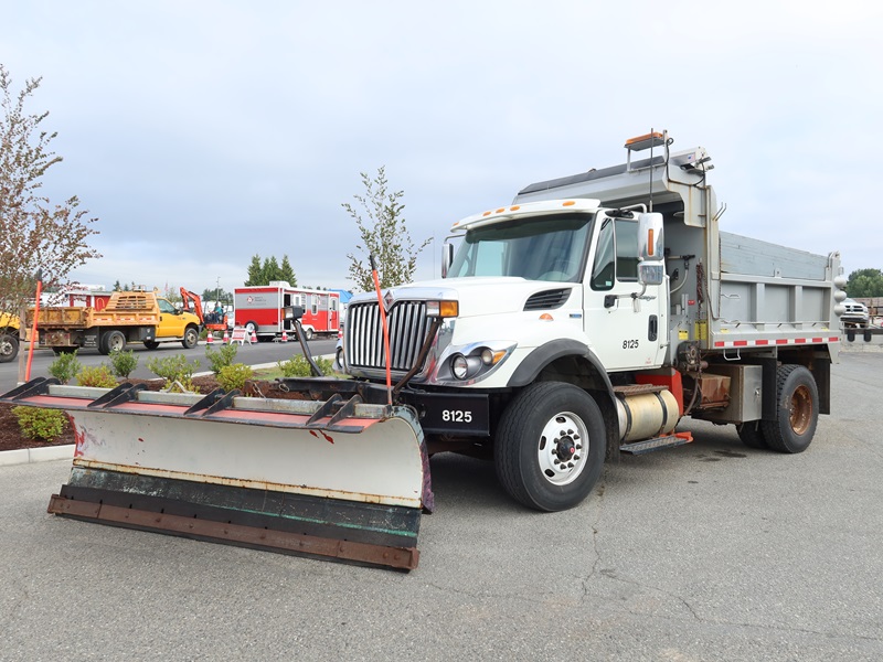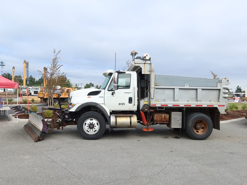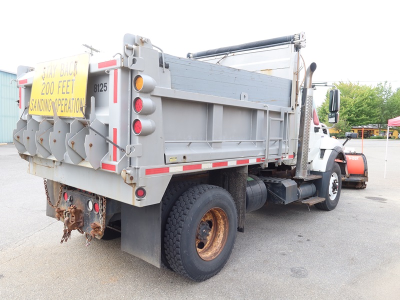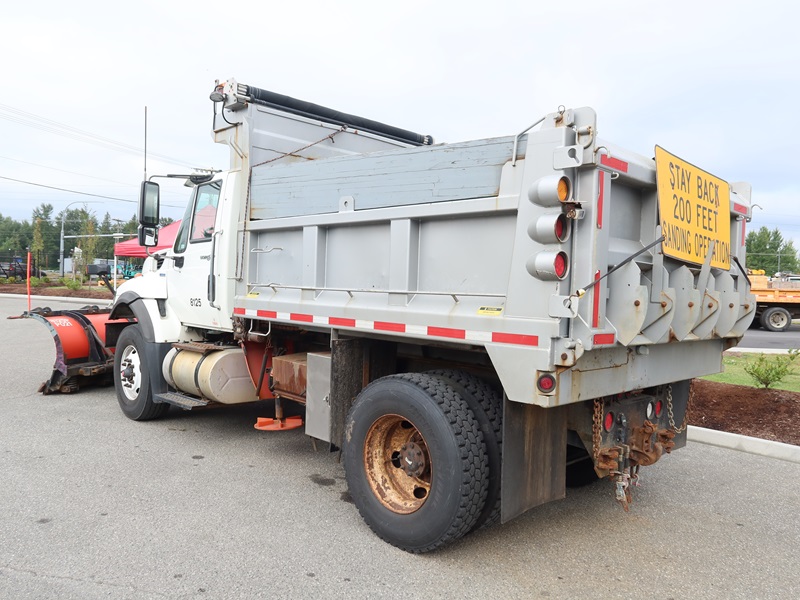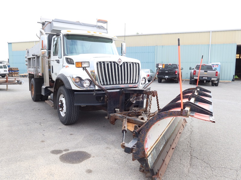 DUMP TRUCK, 300 HP MAXXFORCE GDT300, AUTO, TENCO 10' STEEL BOX/SPREADER, SIDE TILT, 10' SNOW PLOW, TARP SYSTEM, AIR SUSPENSION, 165" W/B, 16,000 LB FRONT, 23,000 LB REARS, A/B, BATCH GATES