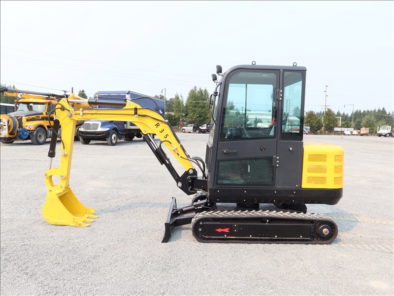 MINI EXCAVATOR, 24.4 HP KUBOTA D1703BM, SWING BOOM, AUX HYD, 19" BUCKET, BLADE, RUBBER TRACKS, CAB