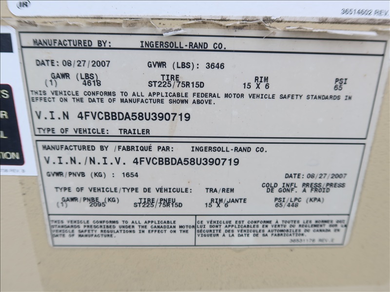 S/A, 185 CFM TRAILER MOUNTED AIR COMPRESSOR, 4 CYL DIESEL ENGINE, TORSION SUSPENSION, ELECT BRAKES, 225/75R15