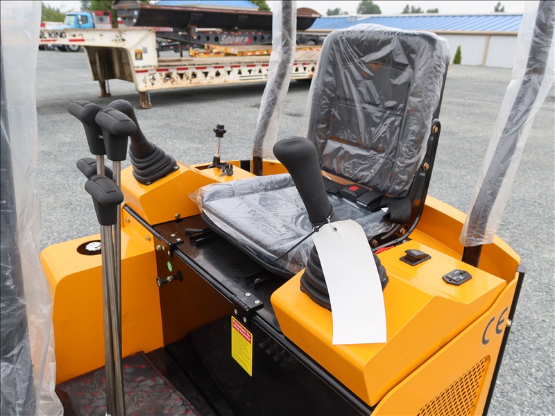 MINI EXCAVATOR, 7.5 HP BRIGGS & STRATTON, AUX HYD, 15" BUCKET THUMB, BLADE, RUBBER TRACKS, CAB